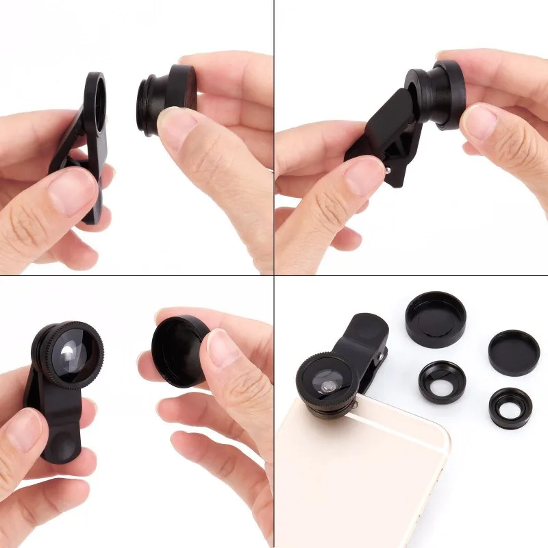 Universal Clip 3 in 1 HD Fish Eye Camera Macro Wide Angle Phone Lens For iPhone 7 8 6 6s Plus X For Samsung Xiaomi redmi Huawei