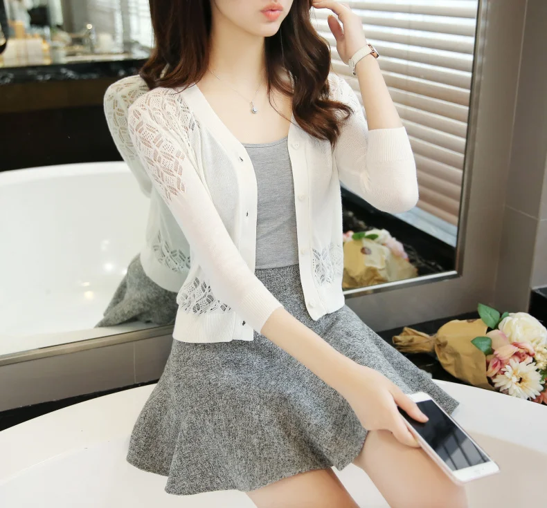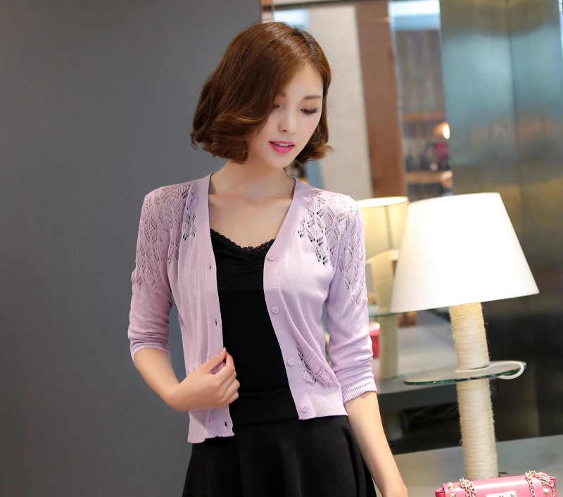 UPPIN 2017 New Spring Autumn Cardigan Women Hollow Cardigan Large Size Solid Color Sweater Cardigan Short Paragraph Female