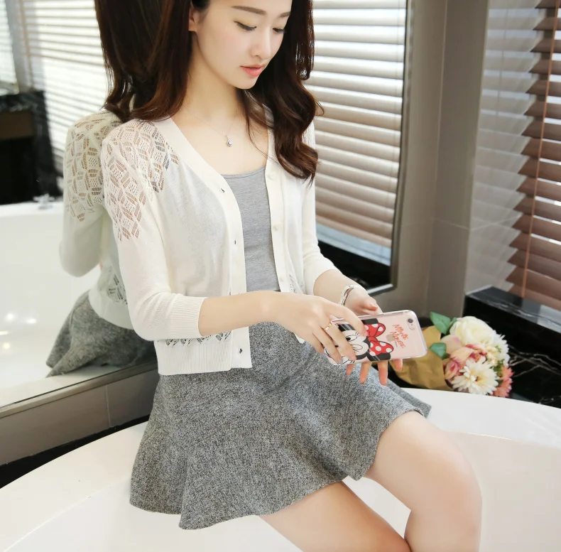 UPPIN 2017 New Spring Autumn Cardigan Women Hollow Cardigan Large Size Solid Color Sweater Cardigan Short Paragraph Female