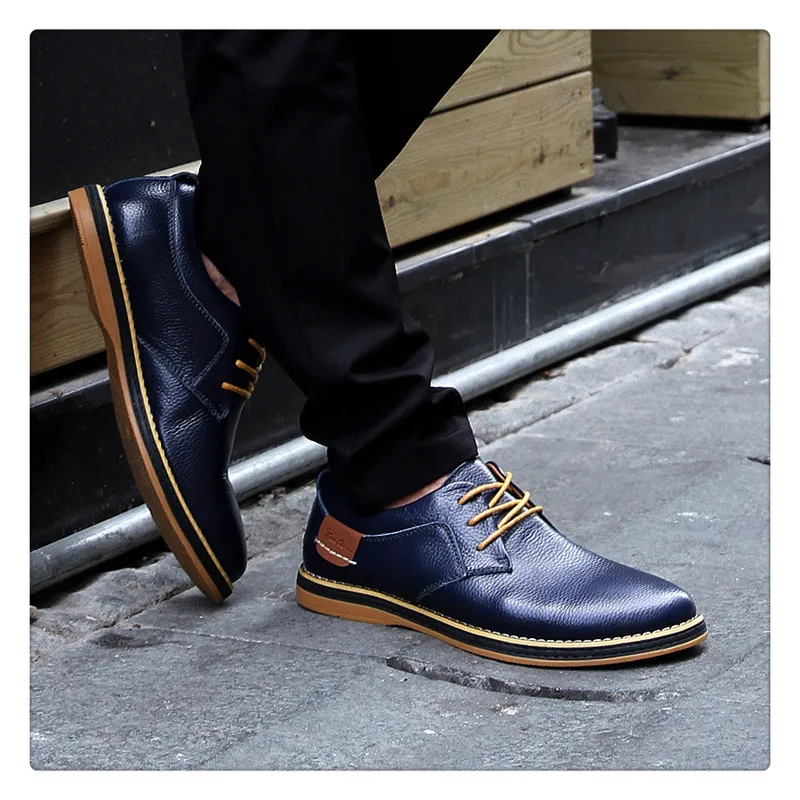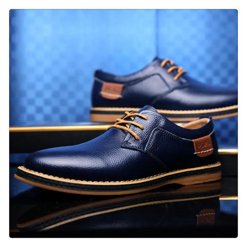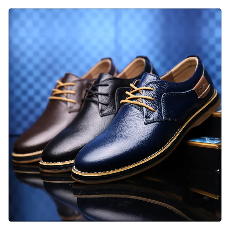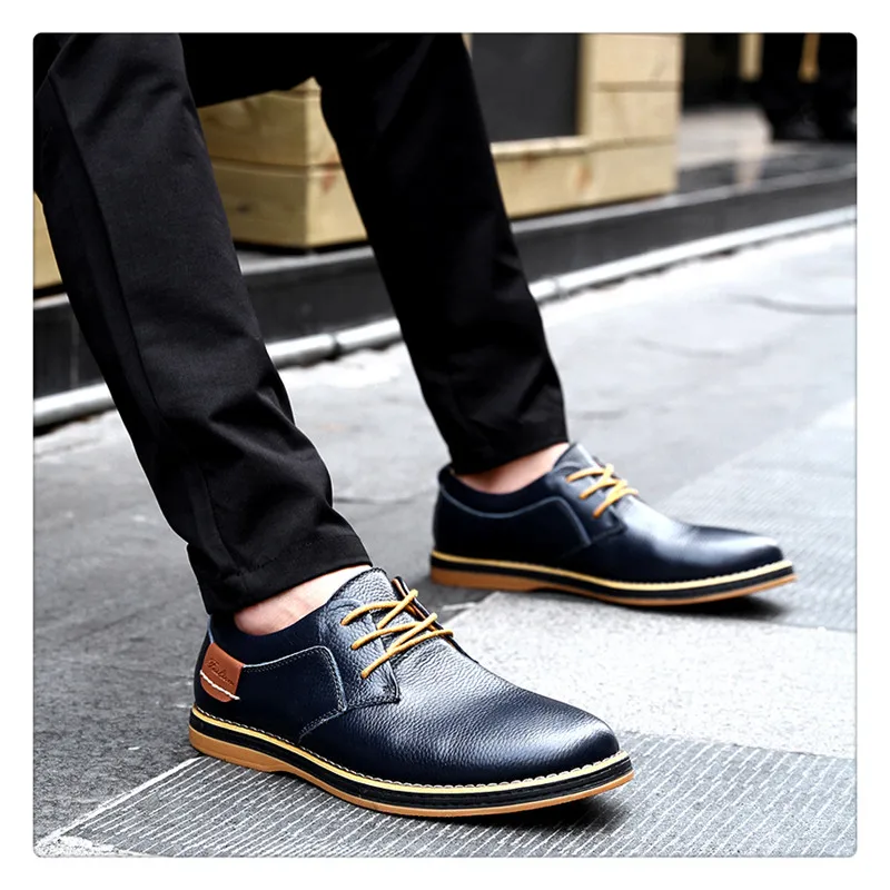URBANFIND Casual Men Leather Dress Shoes For Business Office Size 38-44 Hot Sale Brand Fashion Flat Oxfords Black Blue Brown