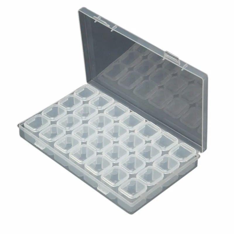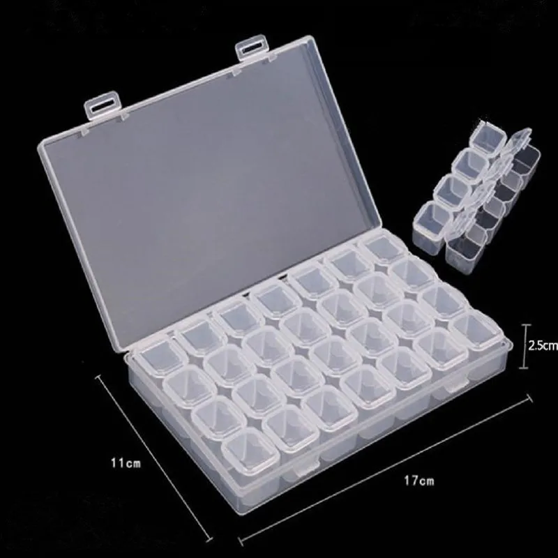 Urijk 28 Slots Nail Art Storage Box Plastic Holder For jewelry Rings Rhinestone Diamond Painting Organizer Transparent Display