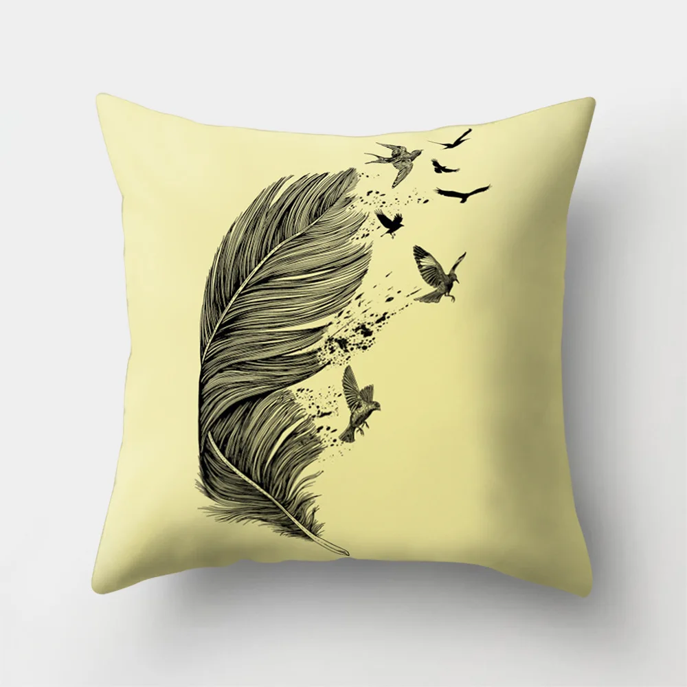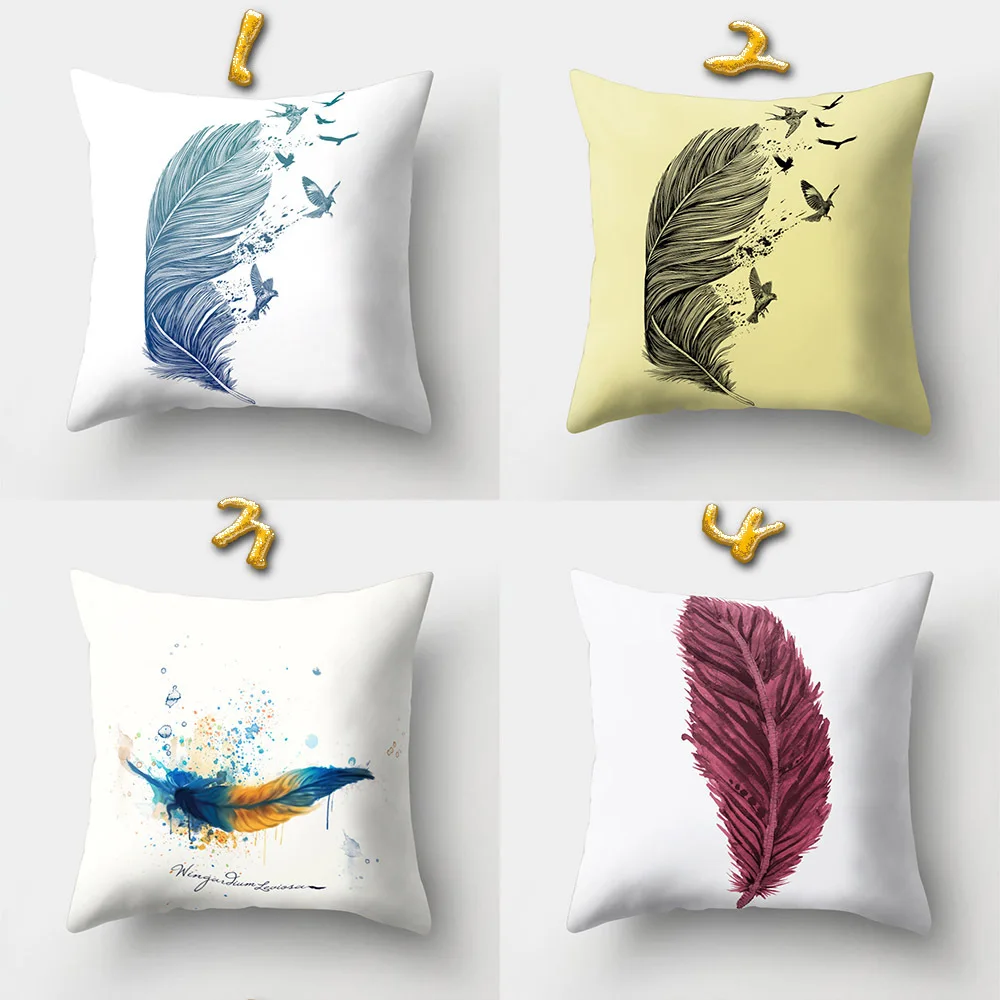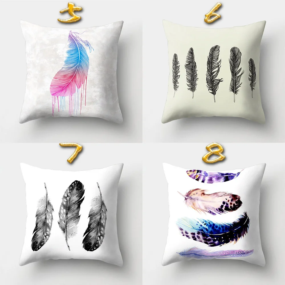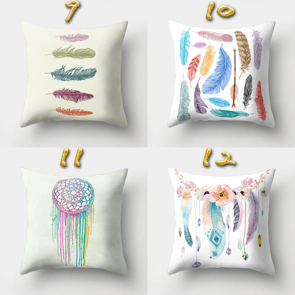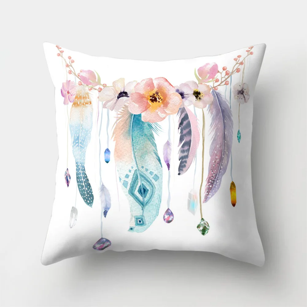 Urijk Feather Printed Pillowcase Home textiles bolster Cover Nordic Style Velvet Cushion Seat Changing Bed Comfortable