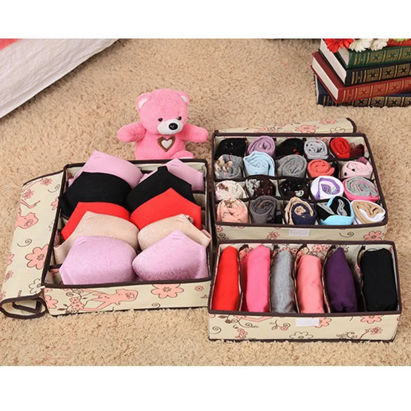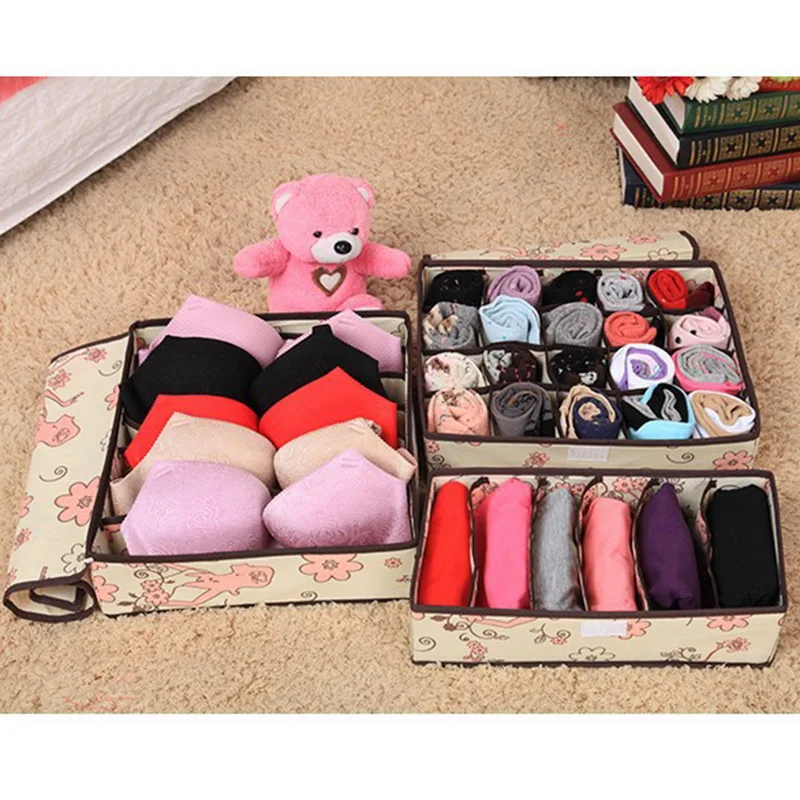 Urijk Storage Boxes Organizer Flodable Non-woven Underwear Socks Bra Drawer Organizer Home Closet Organizer Boxes for Storage drop shipping wholesale