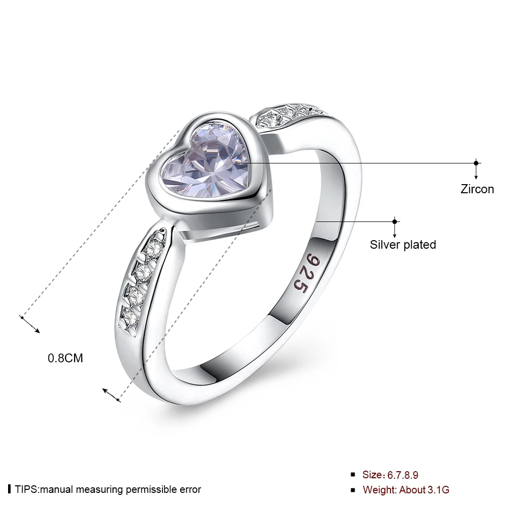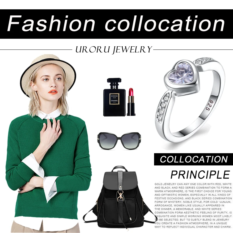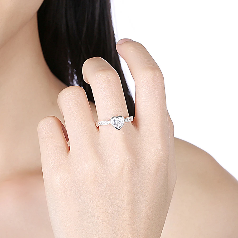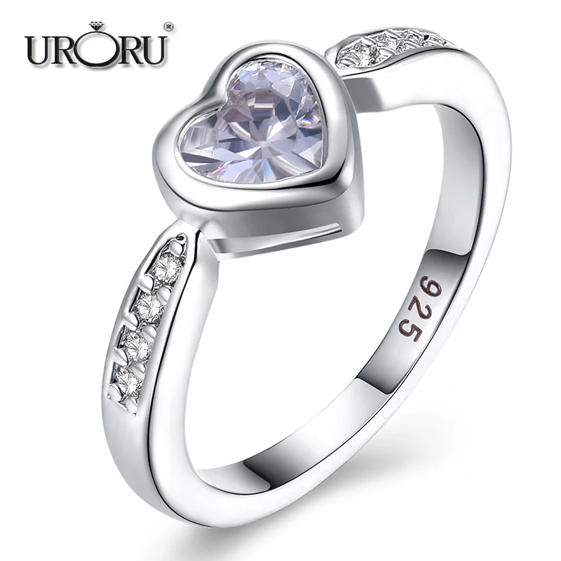 URORU Ring, 925 Sterling Silver Anniversary Wedding Heart CZ Rings For Women European Original Brand Jewelry