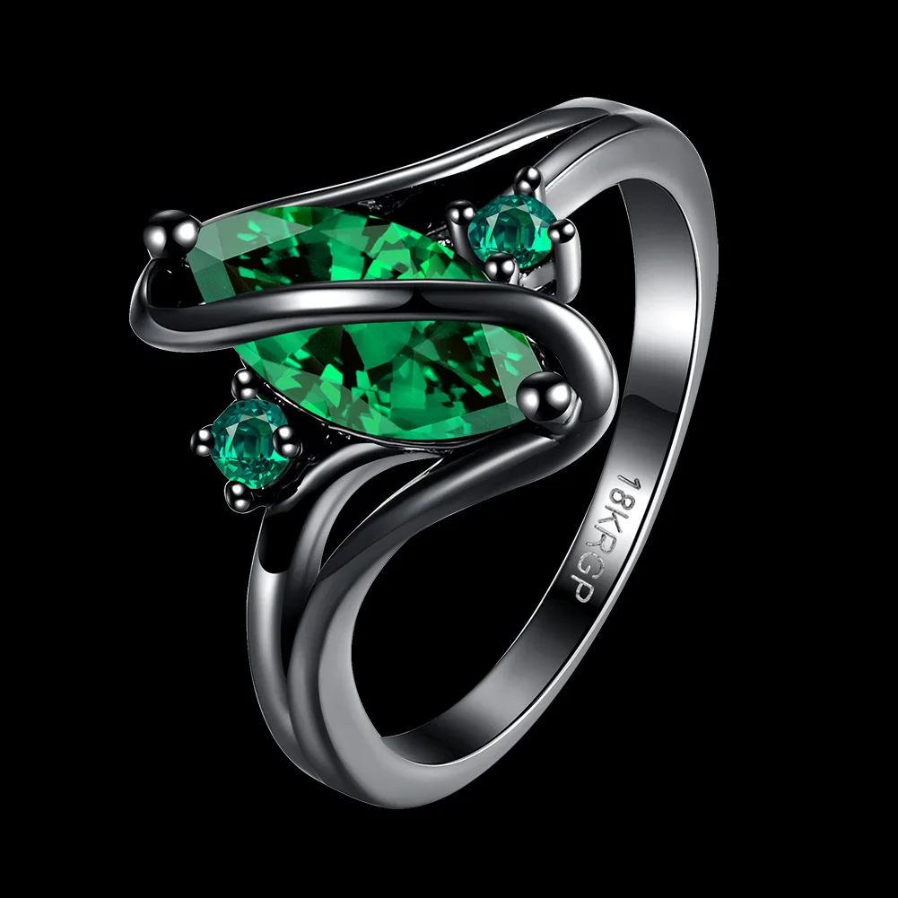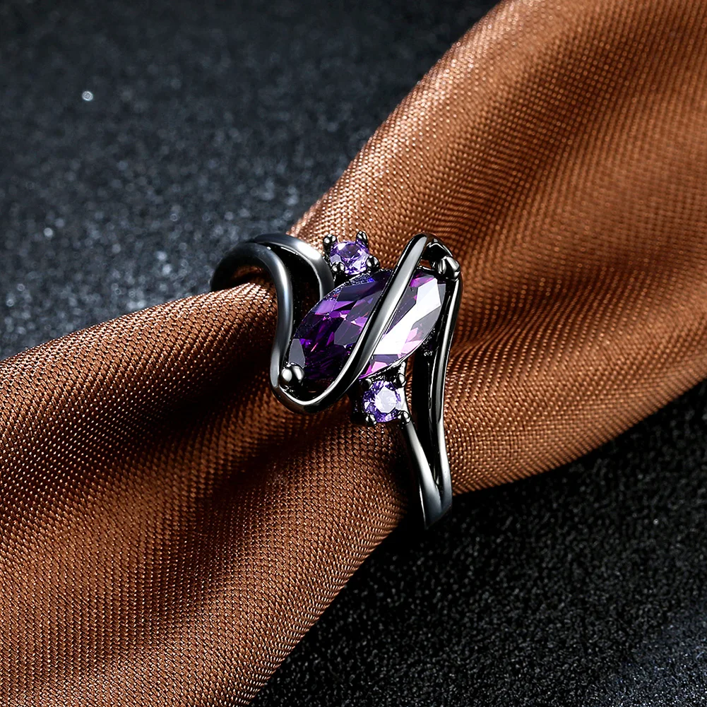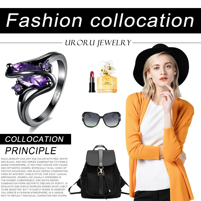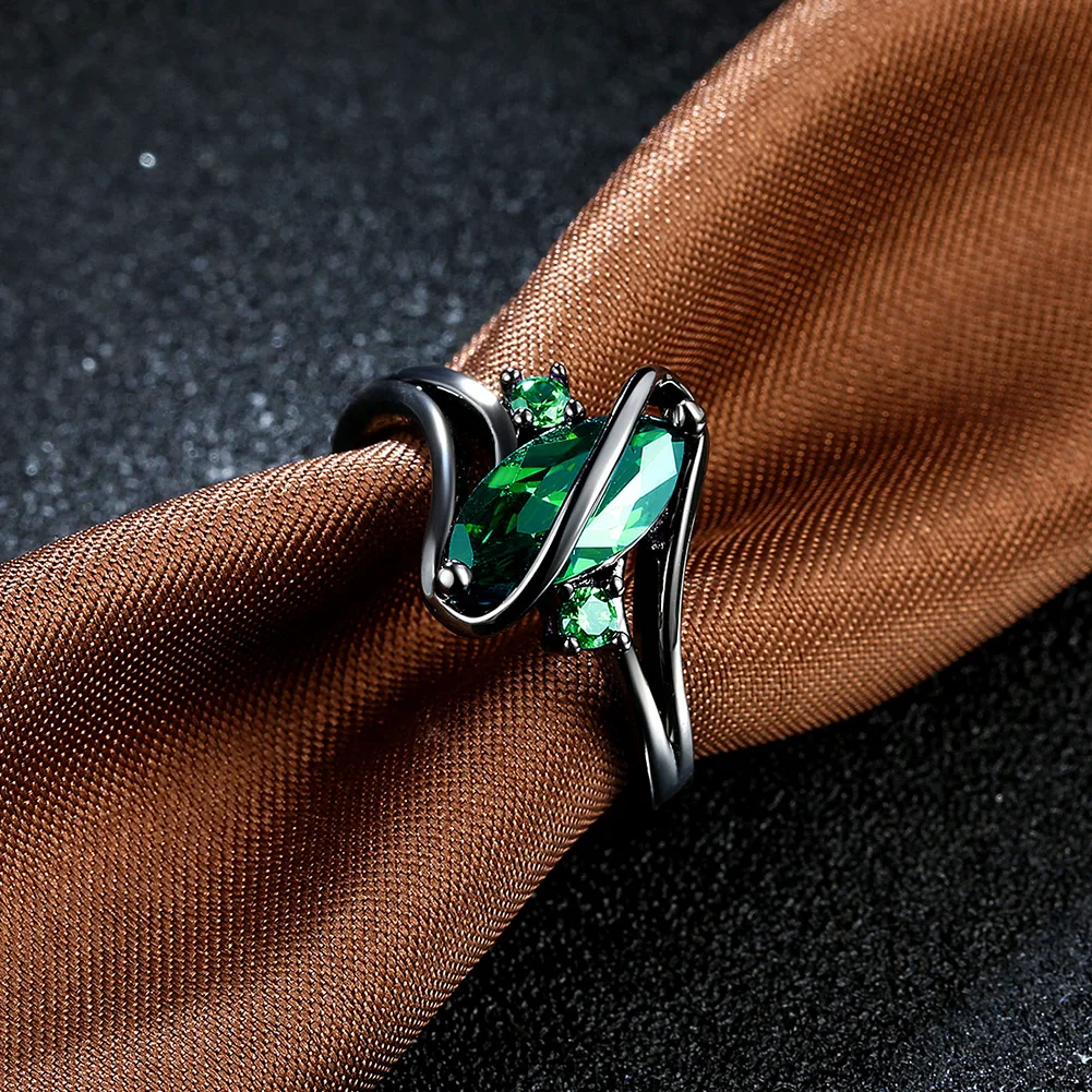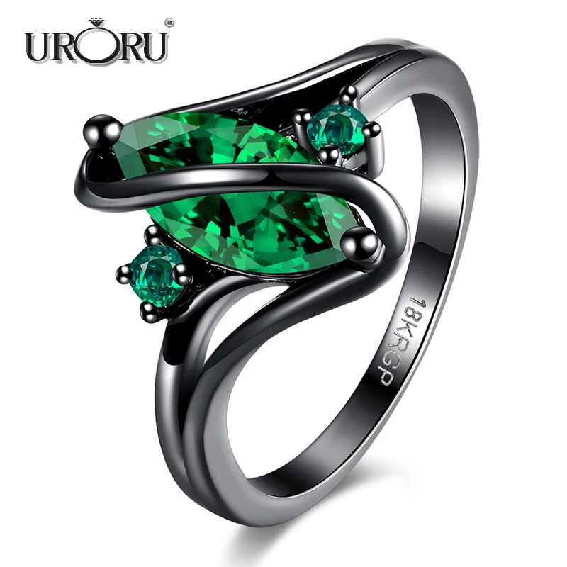 URORU Ring, S Line Ring Green & Purple & Crystal Cubic Zircaonia Personality Black Gold Color Party Ring Jewelry For Women