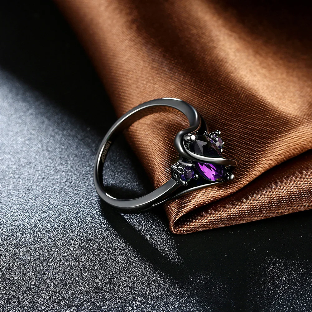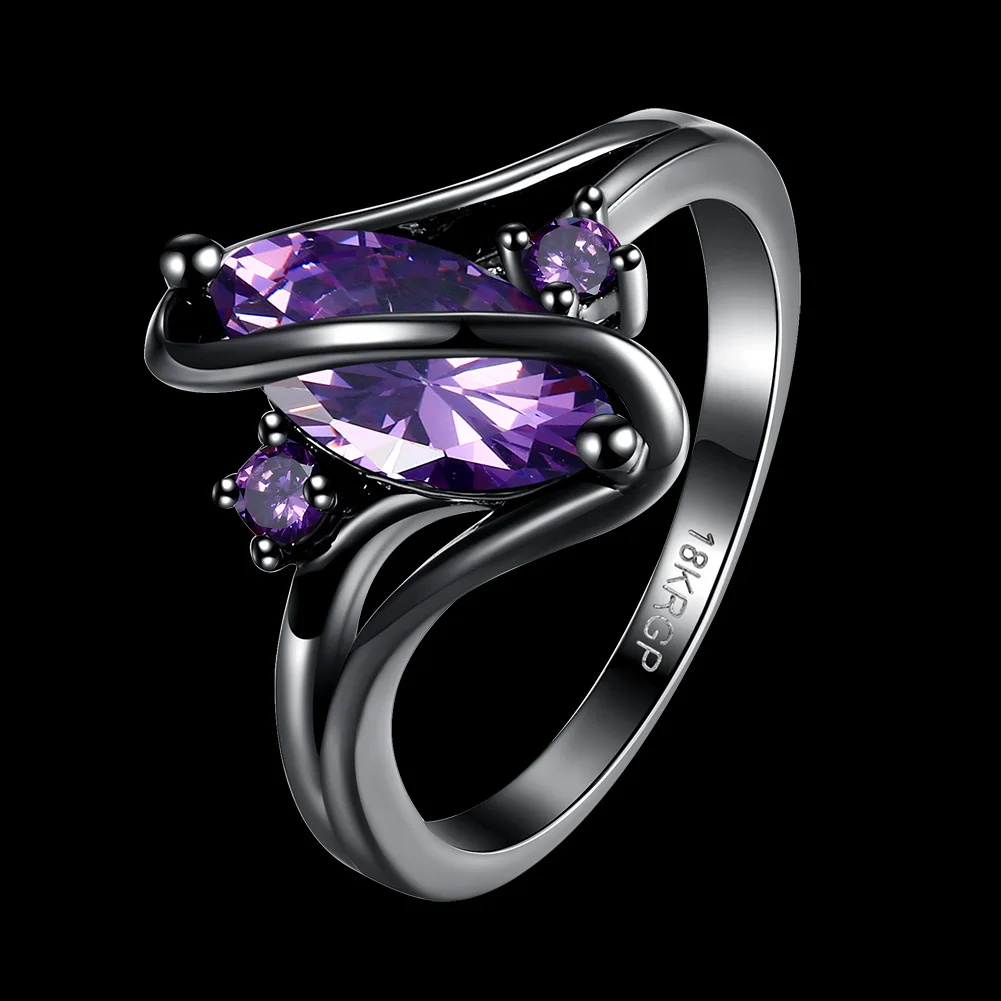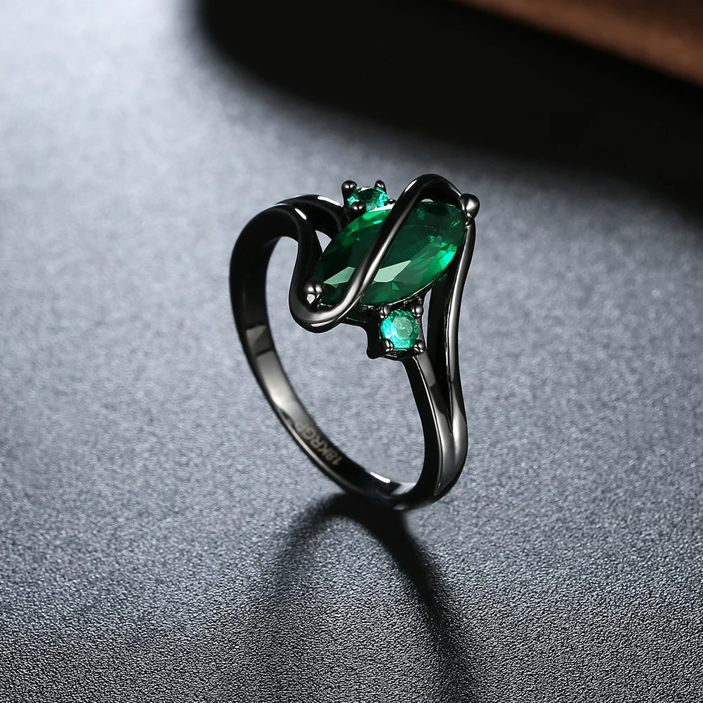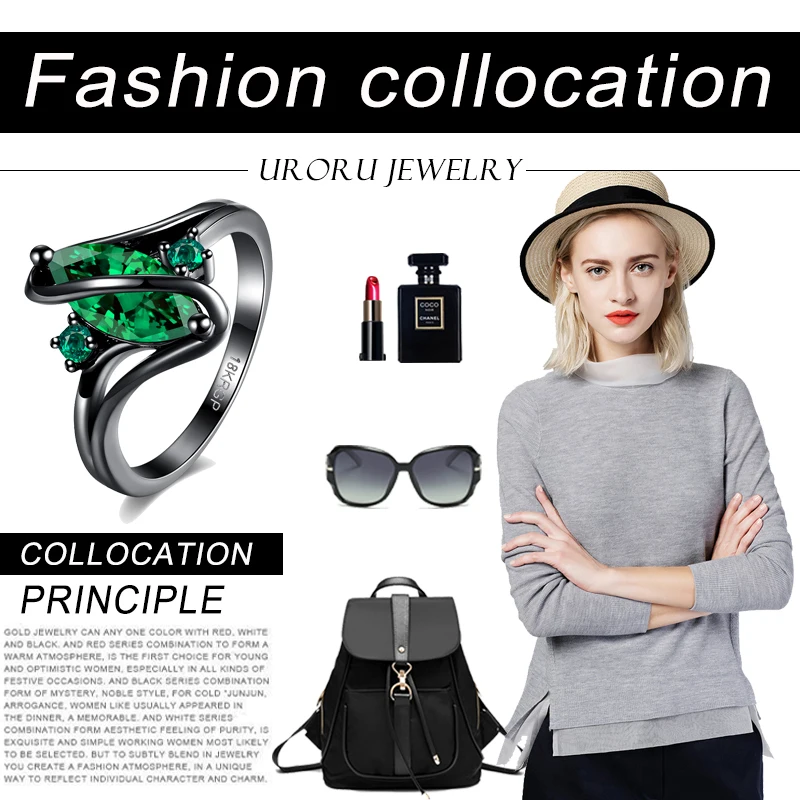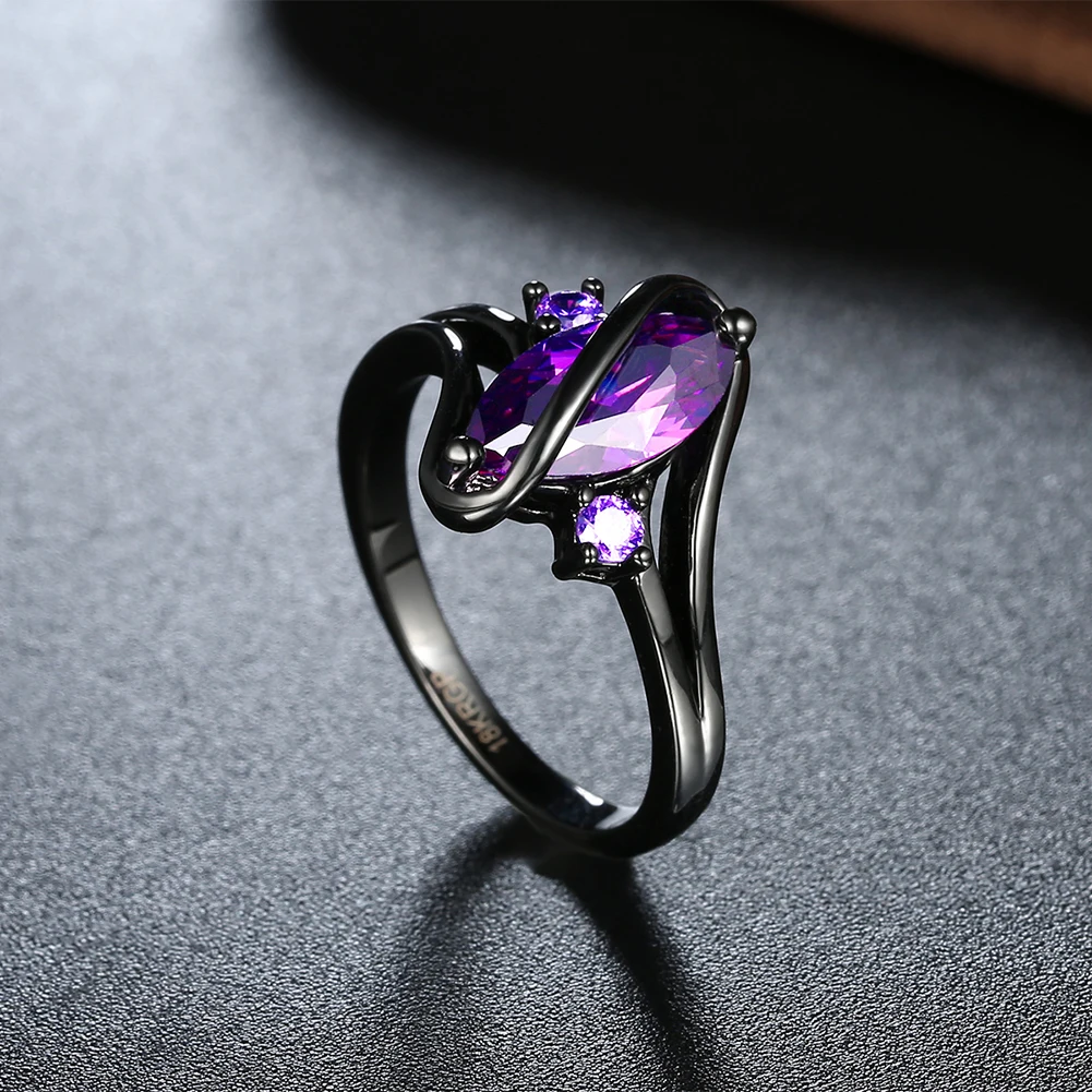 URORU Ring, S Line Ring Green & Purple & Crystal Cubic Zircaonia Personality Black Gold Color Party Ring Jewelry For Women