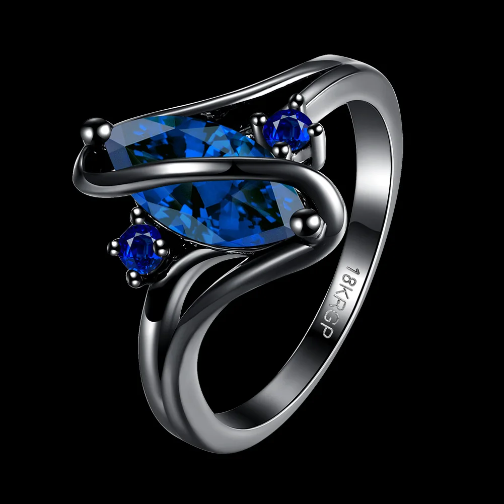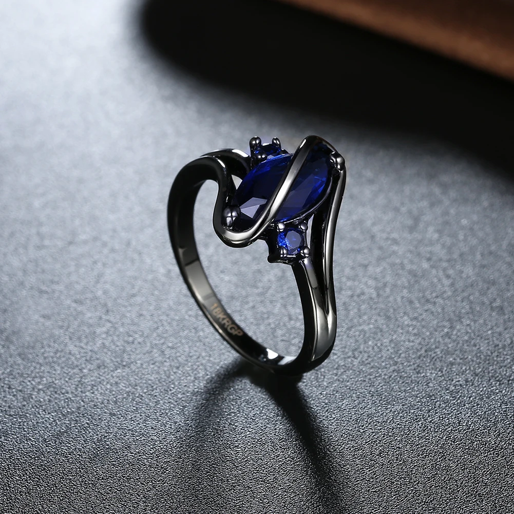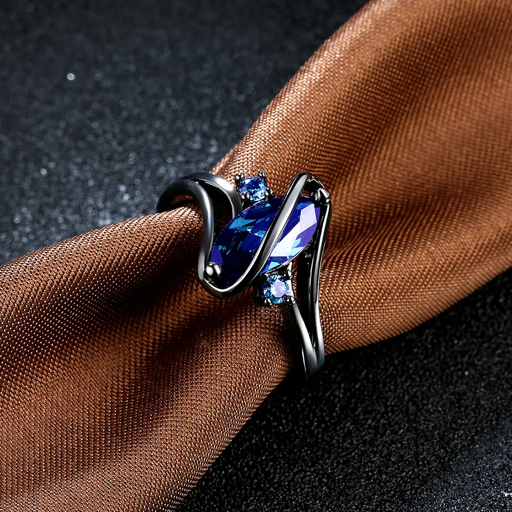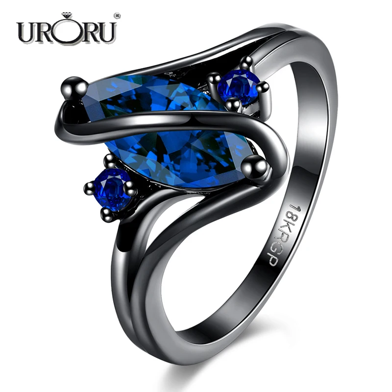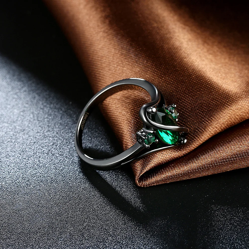 URORU Ring, S Line Ring Green & Purple & Crystal Cubic Zircaonia Personality Black Gold Color Party Ring Jewelry For Women