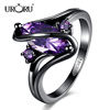 URORU Ring, S Line Ring Green & Purple & Crystal Cubic Zircaonia Personality Black Gold Color Party Ring Jewelry For Women