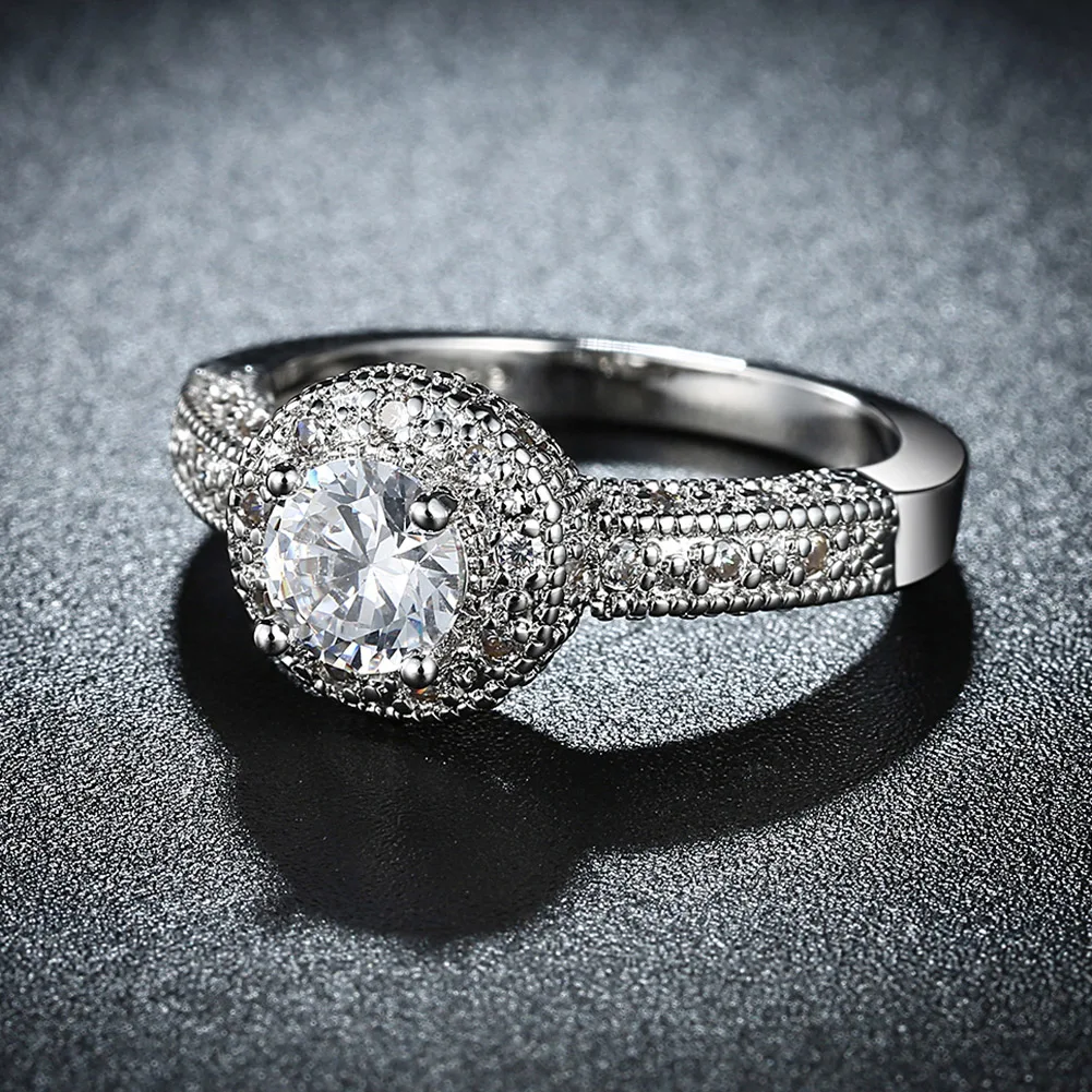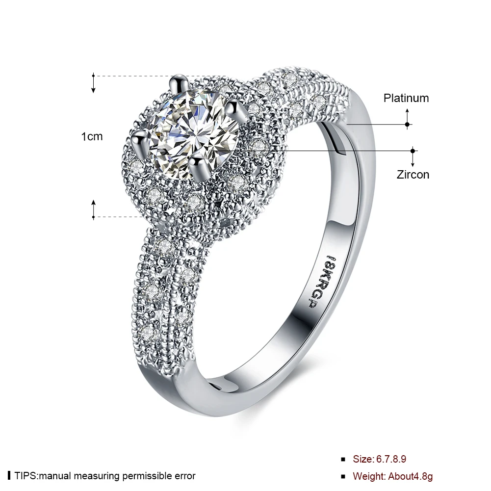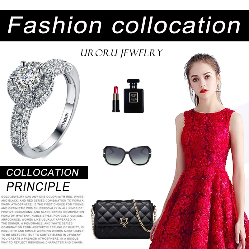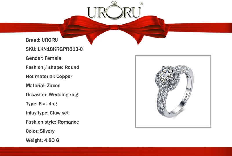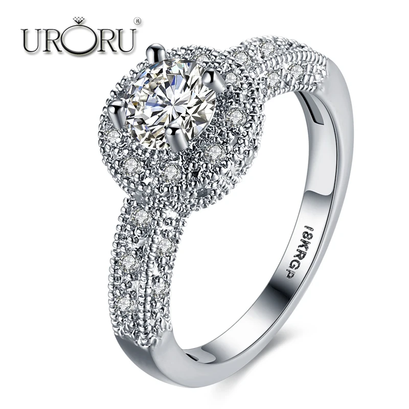 URORU Ring, Women Silver Plated Crystal R Shaped Round Ring Bridal Wedding Jewelry