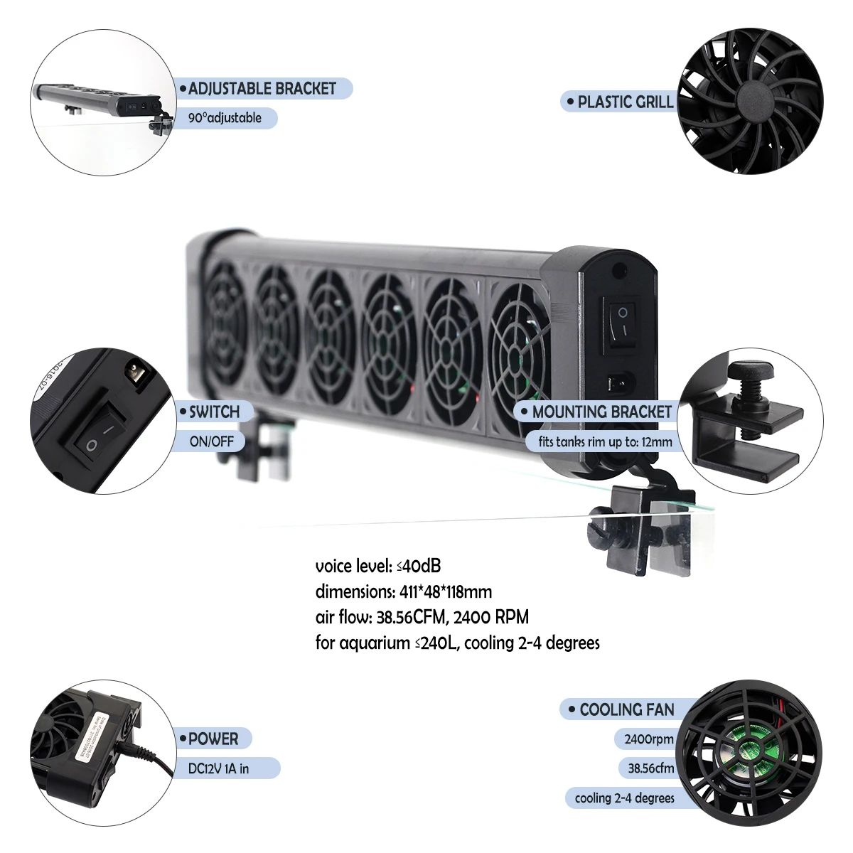 US Plug 2/4/6 Fans Aquarium Chiller Cooling Fan Fish Tank Cold Wind Chiller Temperature Control Adjustable Level Wind 100-240V