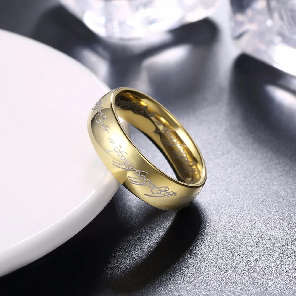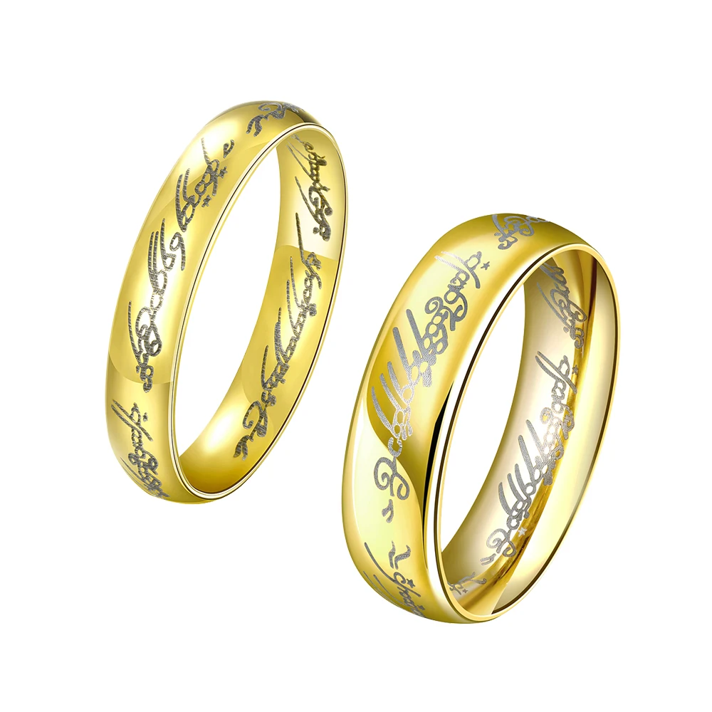 USA Size 6 7 8 9 10 The Tungsten Carbide One Ring of Power Width 6mm 4mm Golden ring for couple Fashion Movie Jewelry