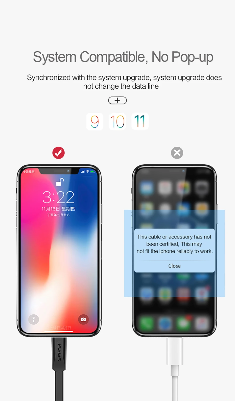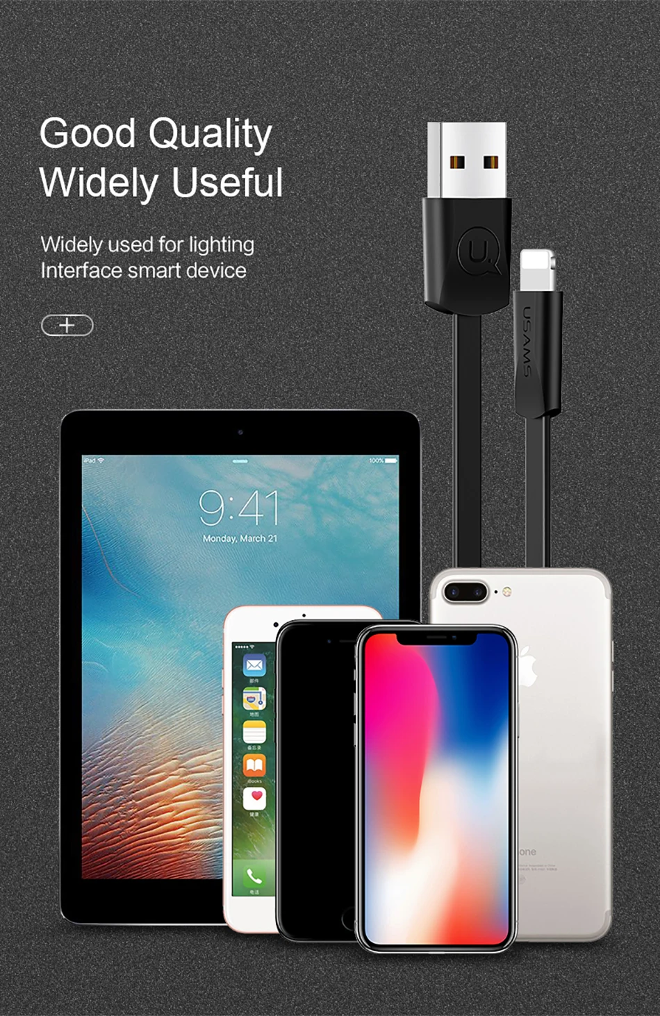 Compatible use for iPhone XS/XR/XS MAX/X/ 8/ 8 plus/ 7/ 7 plus/ 6/ 6s/ 6 plus/ 6s plus/ 5/ 5s/ SE/ 5C; For iPad mini/ Air /Pro