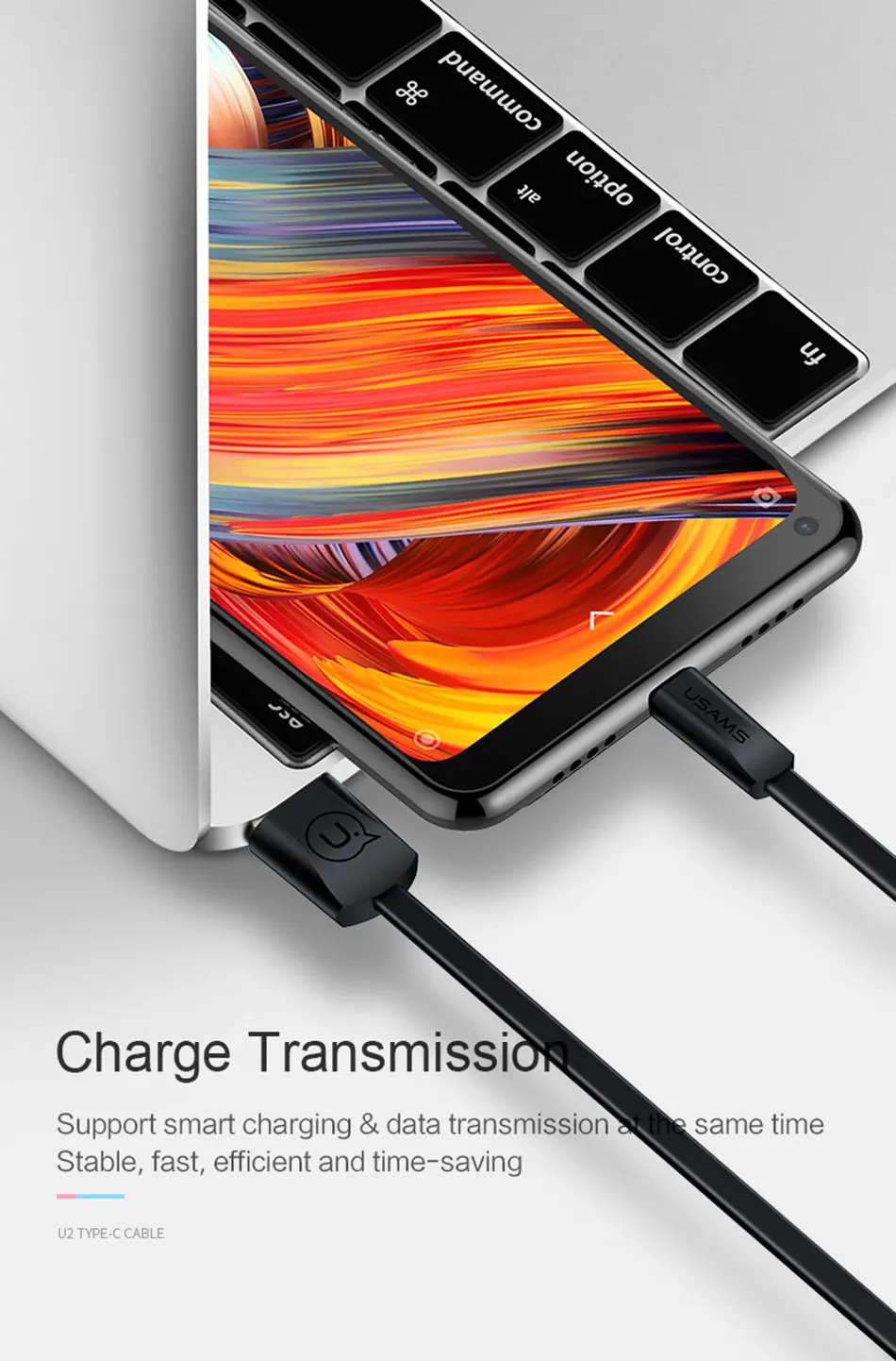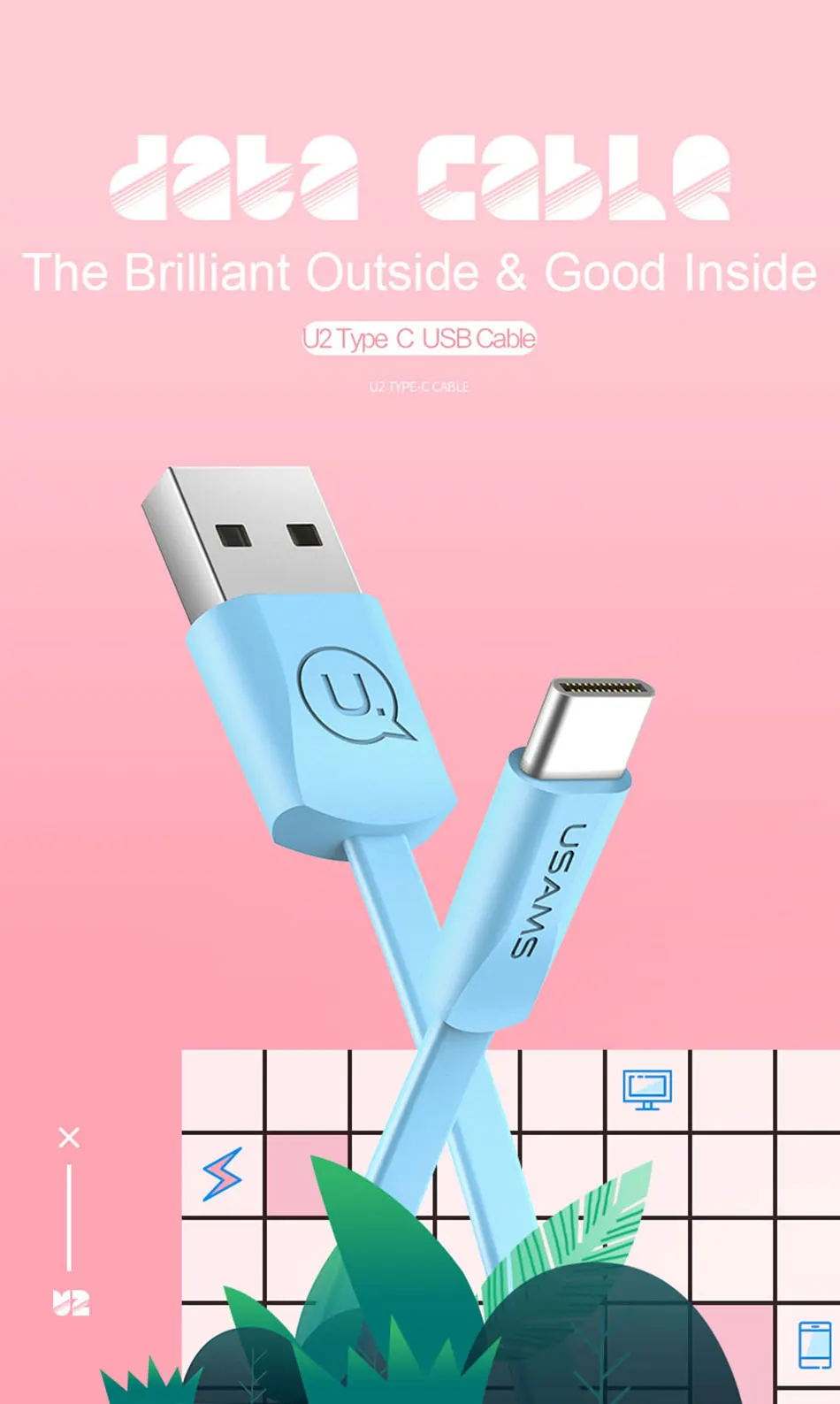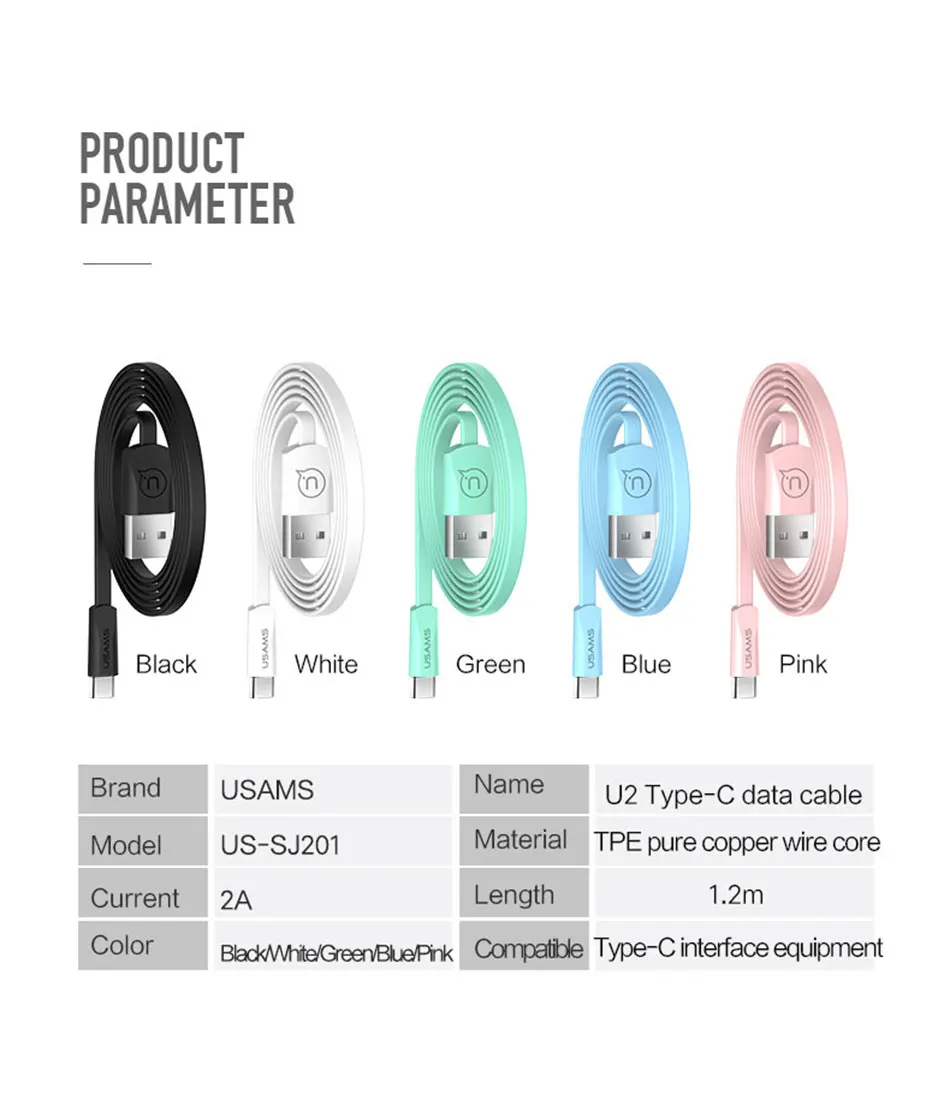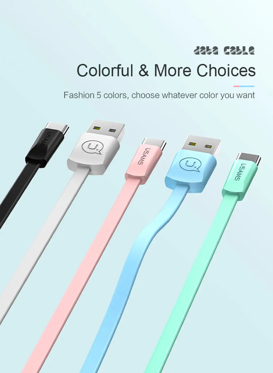 USAMS USB Type c cable for Samsung S9 USB-C Cable for Xiaomi mi8 USB cable 2A mobile phone charger cable for Huawei P20 cord