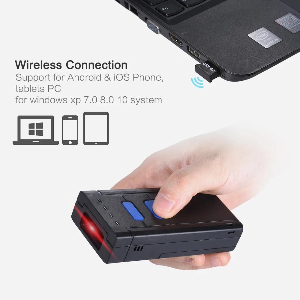 Portable wireless bluetooth 1D barcode scanner, with powerful decode capacity.