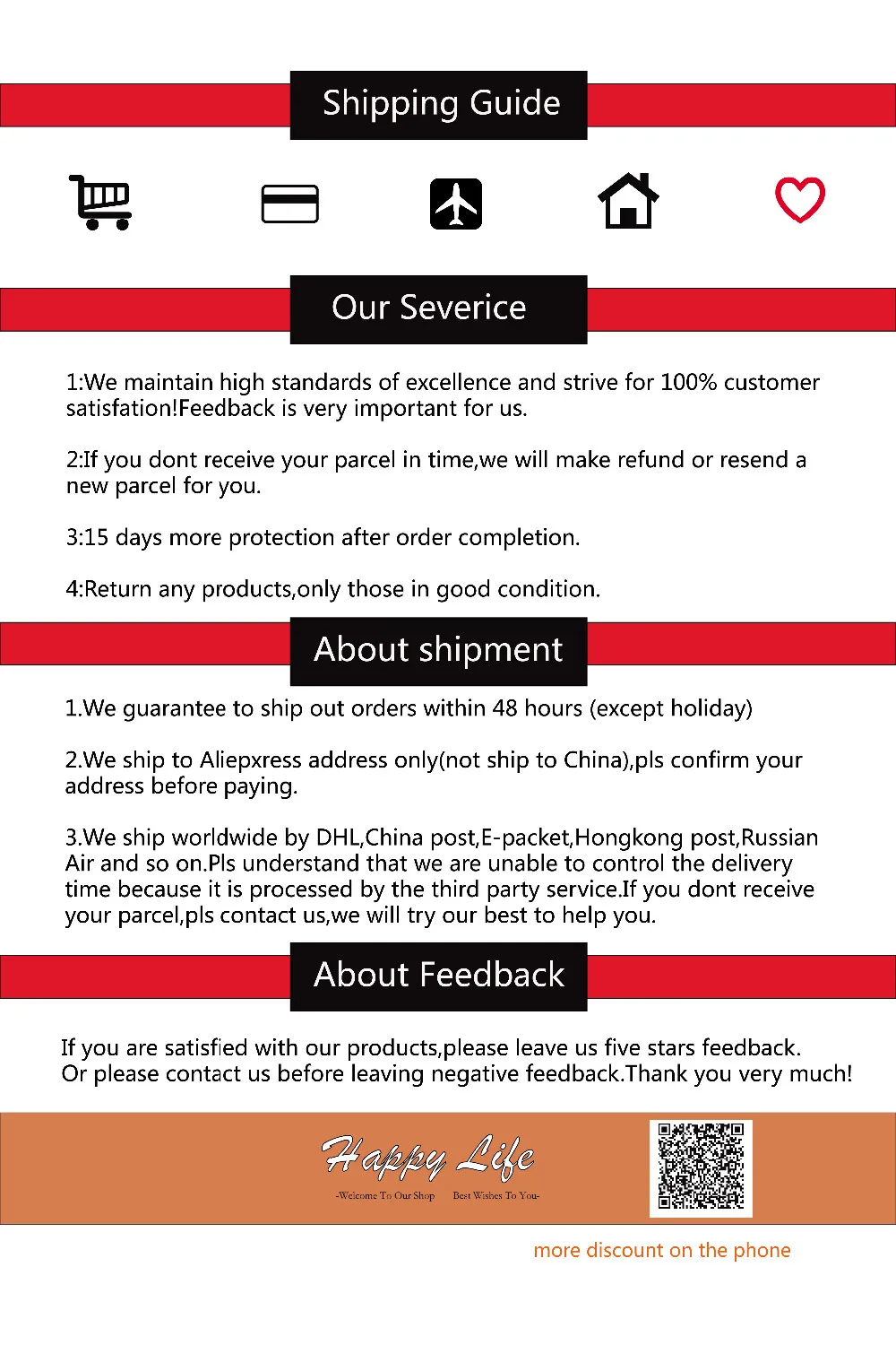 reach the parcel on time,Please contact us before you open the dispute,We will checked the parcel and