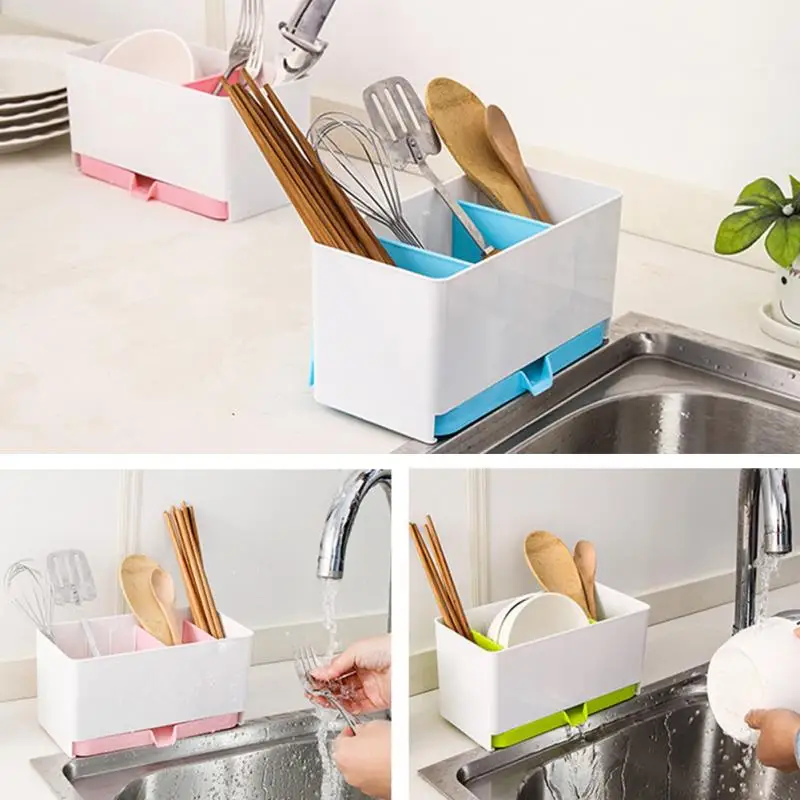 Utensils Holder Rack Candy Sponge Basket Wash Dry Shelf Cutlery Drainer Sink Tidy Organizer Kitchen Tools Storage Organizer