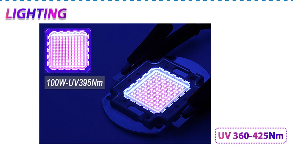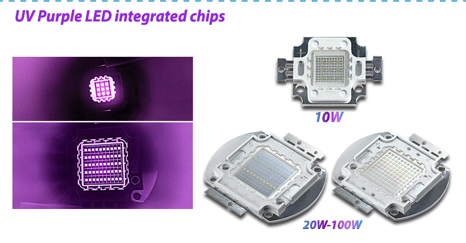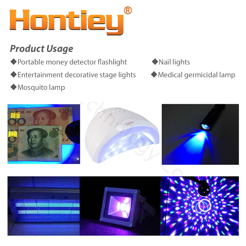 - Chip Name: Hontiey UV Purple LED integrated matrix 10w 20w 30w 50w 100w 365Nm 375Nm 385Nm 395Nm 405Nm High Power Ultraviolet Light DIY UVA Chip/Bulb/Bead