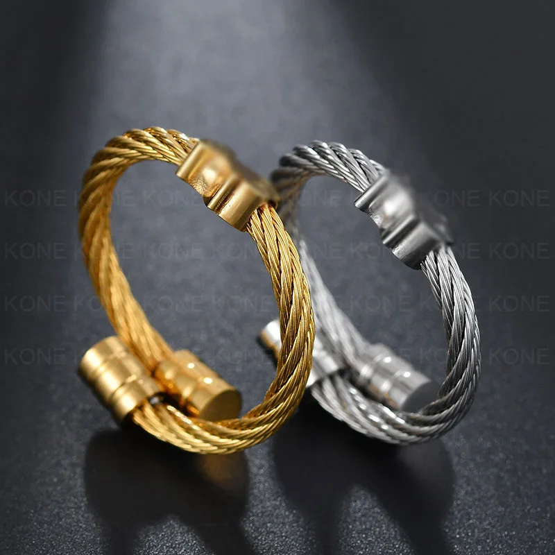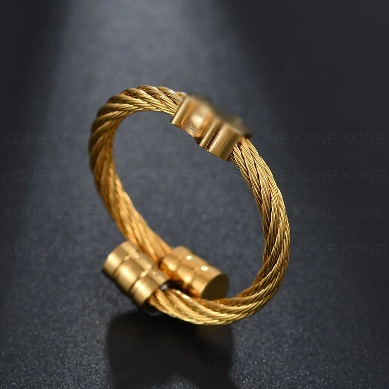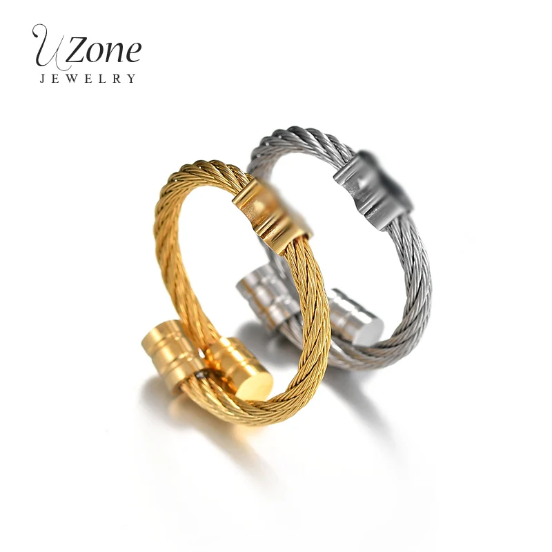 UZone Cute Gold Color Bear Adjustable Ring Stainless Steel Classical Wedding Engagement Ring for Woman Girls Jewelry
