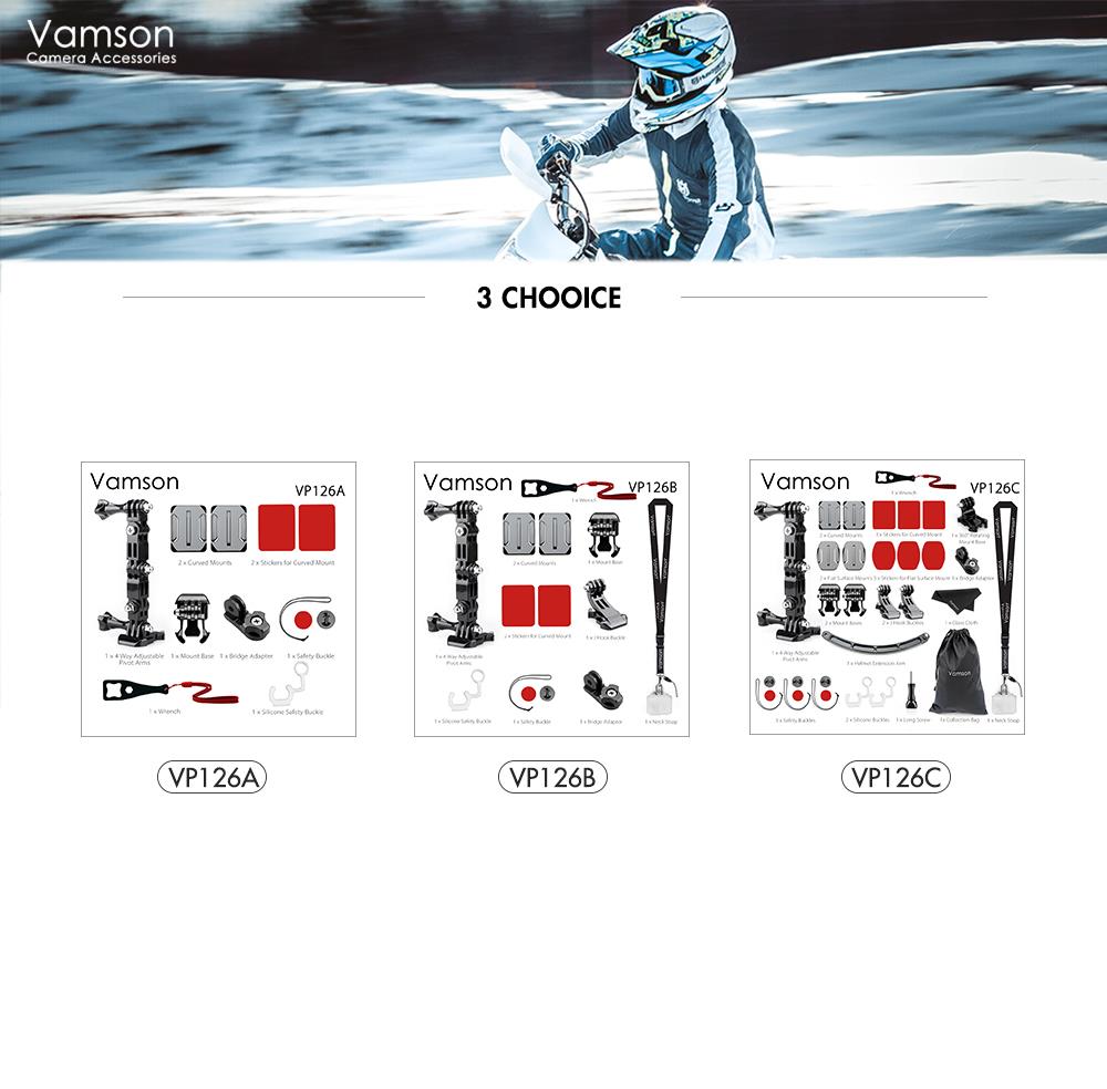 Vamson Accessories for Gopro Hero 6 5 4 3 Helmet 4 Way Adjustable Pivot Arms Neck Strap Mount for Xiaomi YI for SJCAM VP126A