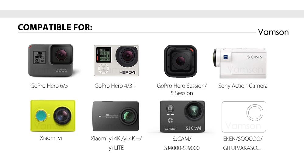 Pay attention: Our products are brand “Vamson”(not Gopro brand), but they fit well for Gopro and other sports cameras.