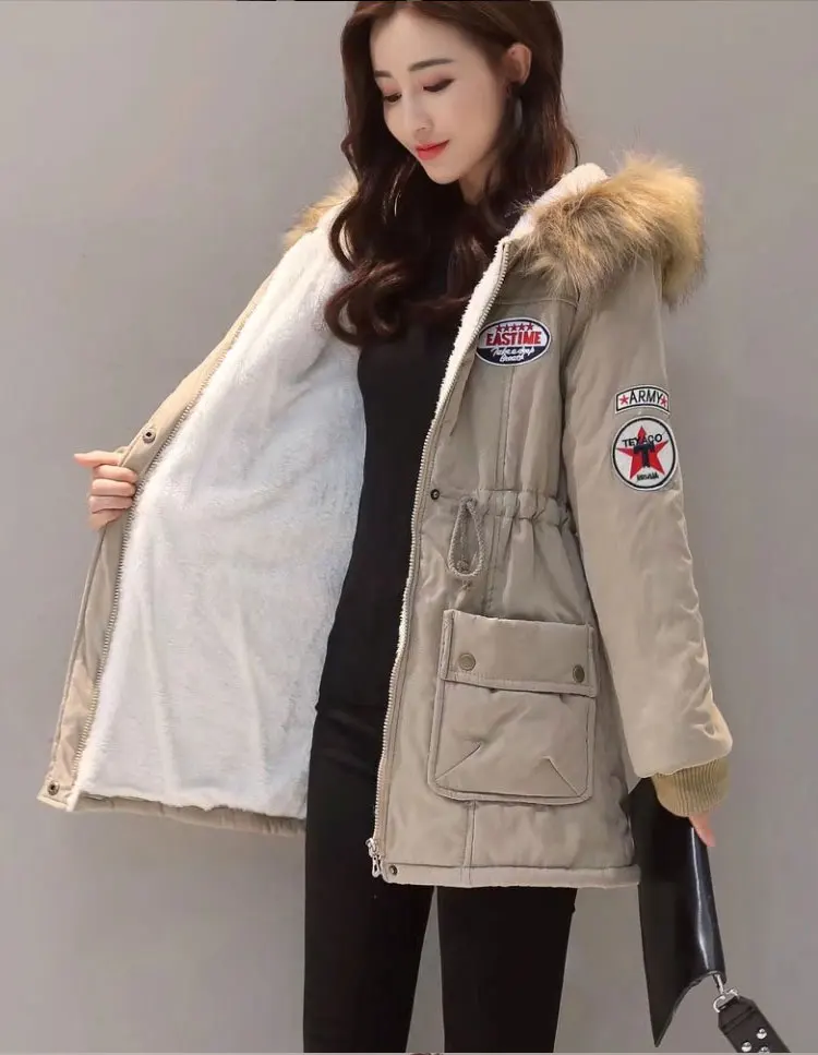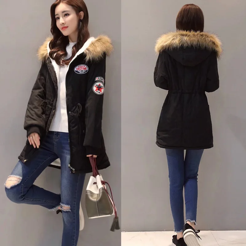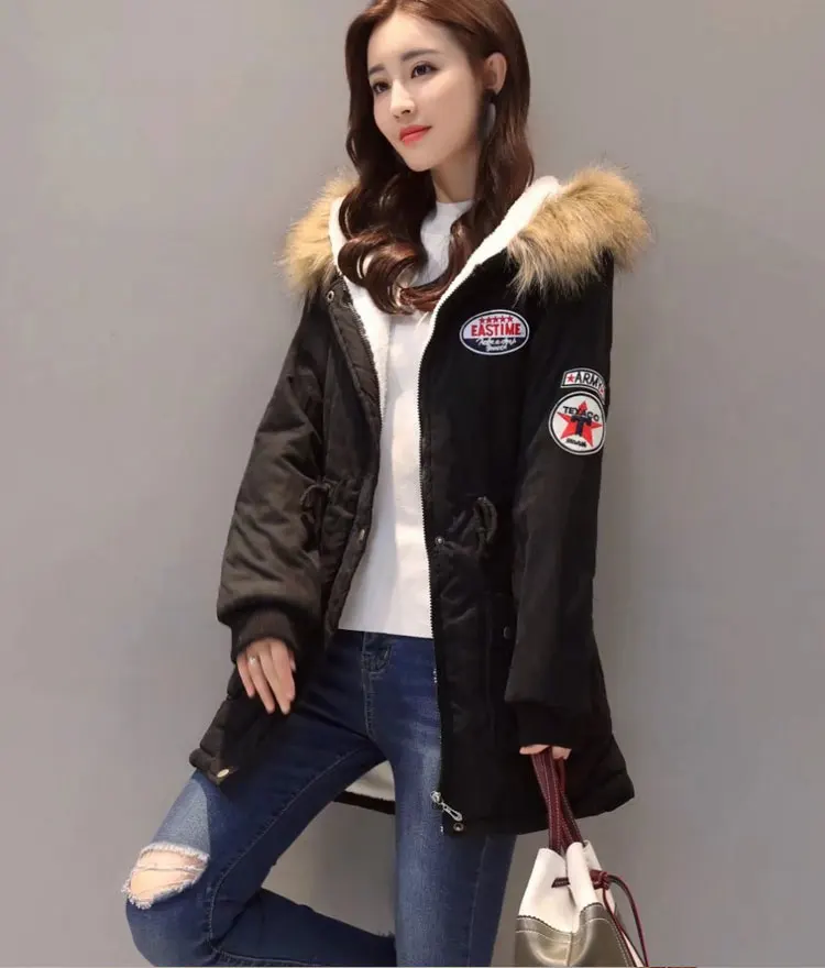 Vangull Hooded Warm Winter Coat Women 2018 Slim Plus Size Thick Jacket Black Long Cotton Parkas Mujer Letter Casaco Overcoat