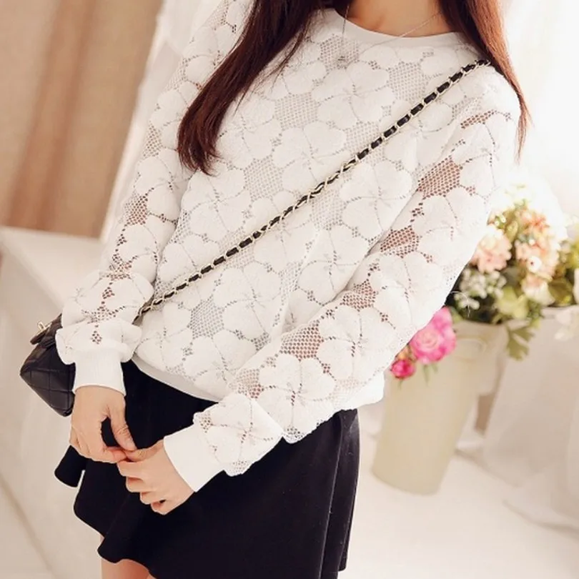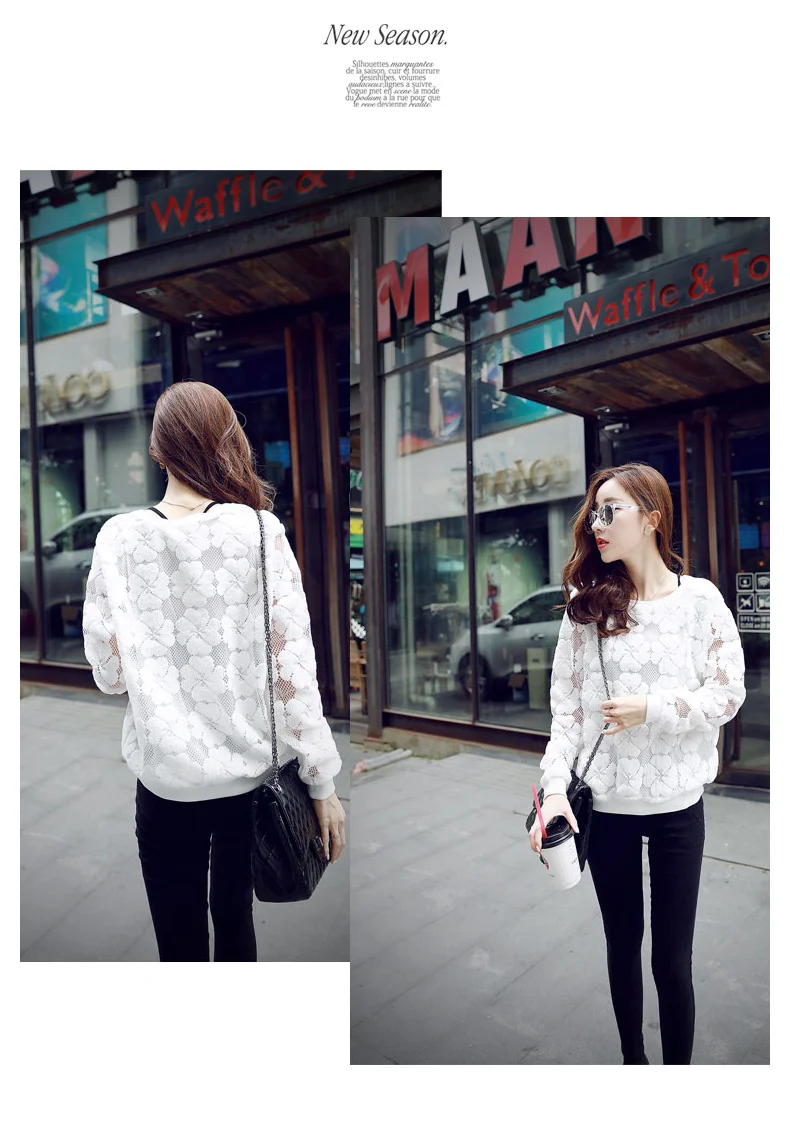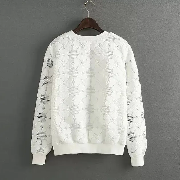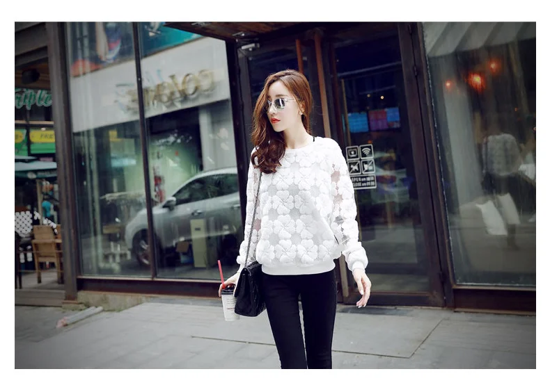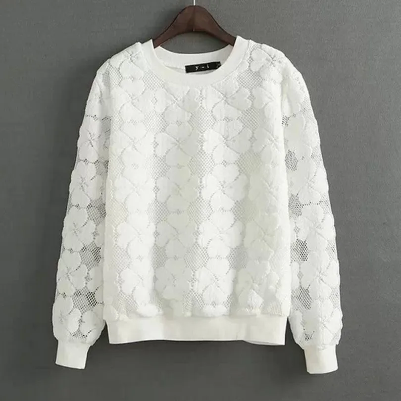Vangull O-Neck Hedging Sweatshirt New Women Lace Hollow Out Female Hoodies All-Match Bottoming Sudaderas S~XXL Moletom Feminina