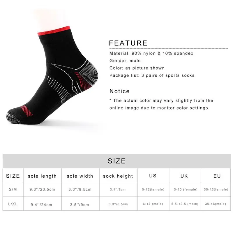 These sports socks are well made of breathable, quick-dry and moisture-wicking fabric, which provide you with cool and comfortable wear experience even after high-intensity exercise. In addition, they are ideal for both indoor and outdoor activities like running, jogging, playing tennis and other outdoor exercise.