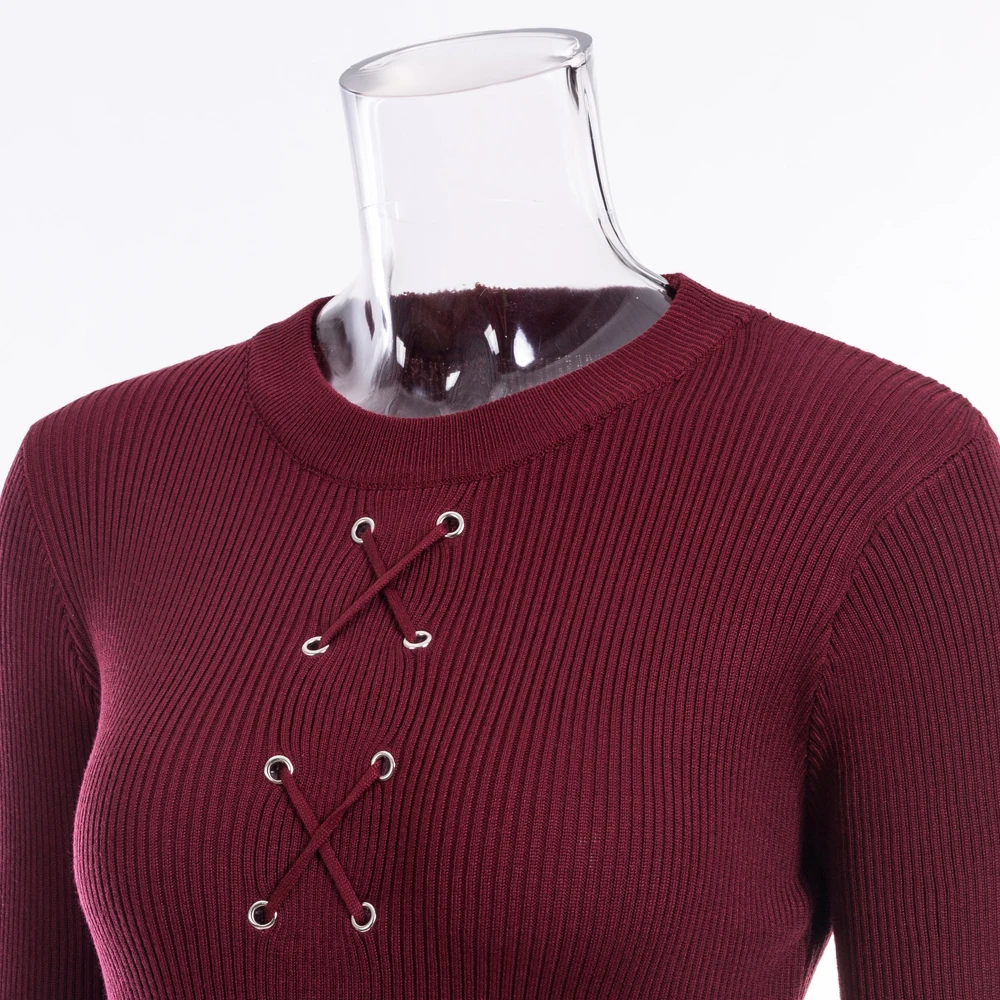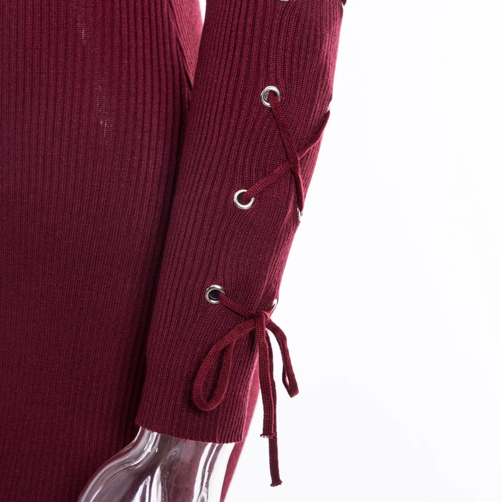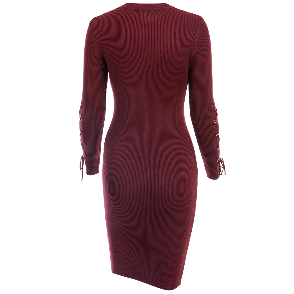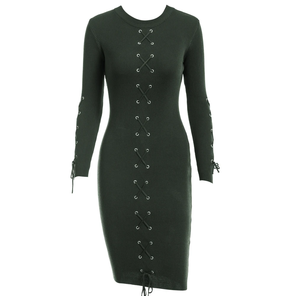 VEEGGI Autumn Winter Women Party Sheath Wrap Bandage Dresses Long Sleeve O-Neck Sexy Knitted Midi Dress Female 1807020