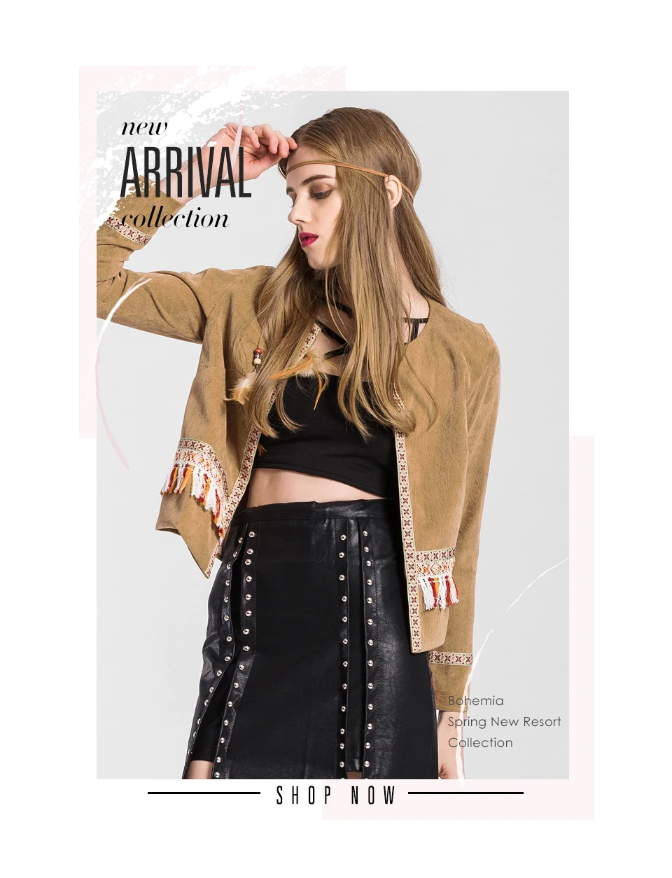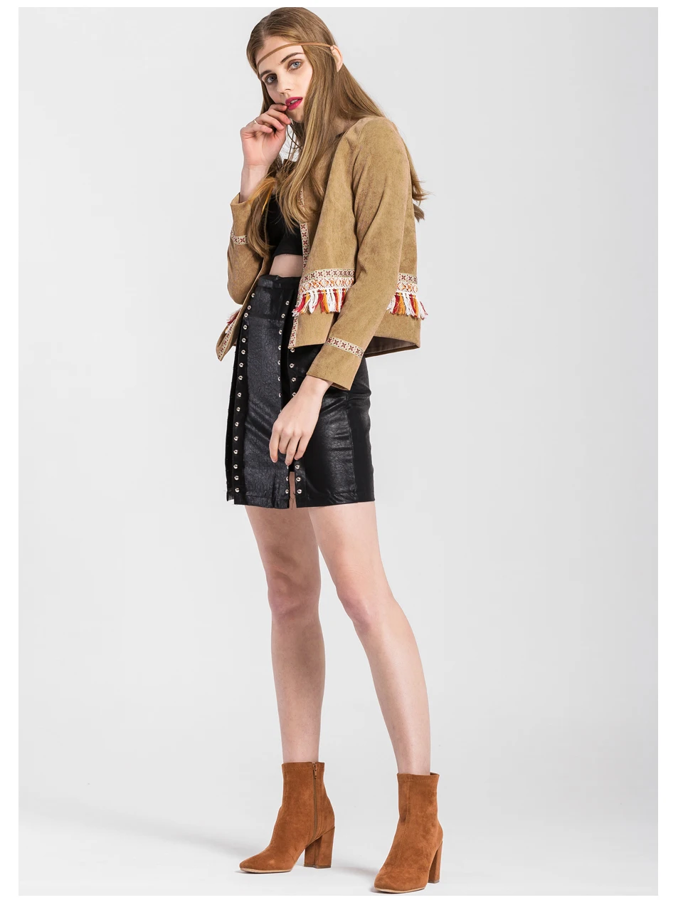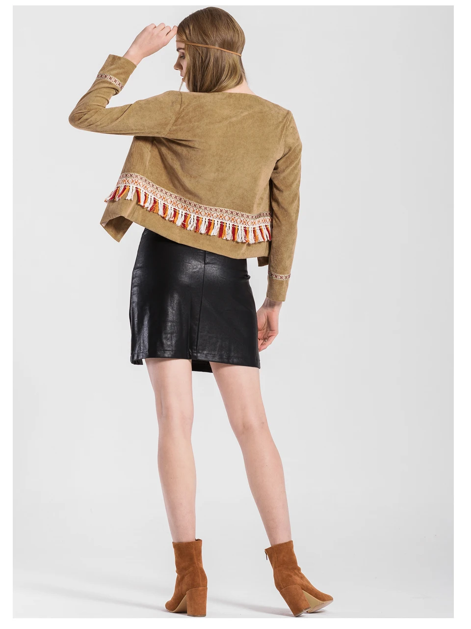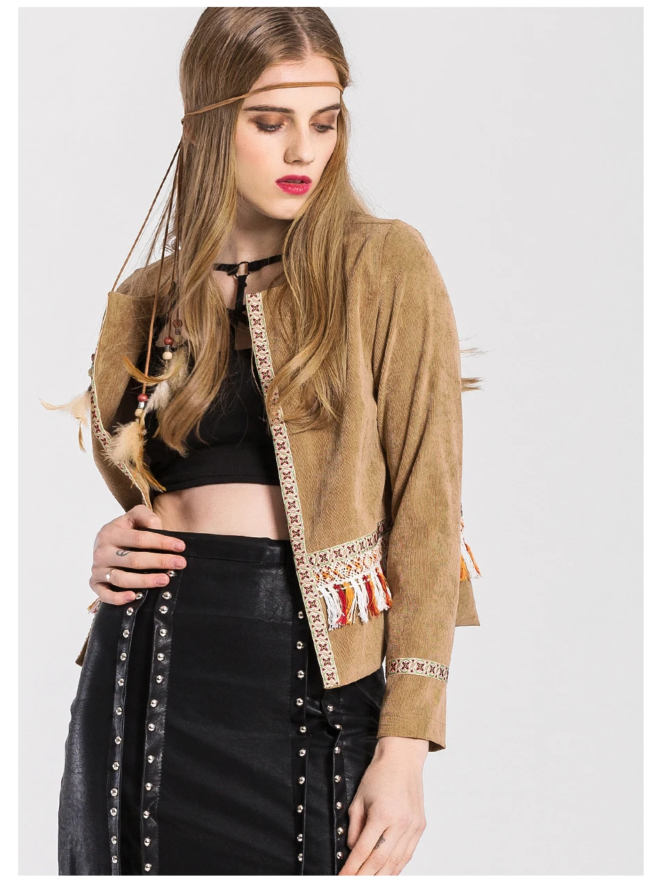 VEEGGI Women Bohemian Vintage Jackets New Arrival Boho Style Tassel Print Open Stitch O-Neck Long Sleeve Short Coats