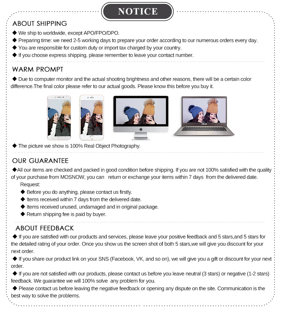 • If you did not receive the product within the guaranteed time( 45 days not including 2-5 day processing) you can request a refund or a reshipment.