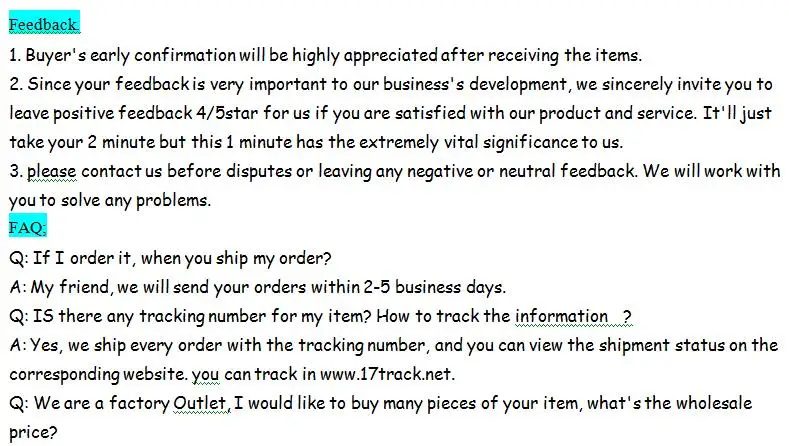 • If you did not receive the product within the guaranteed time( 45 days not including 2-5 day processing) you can request a refund or a reshipment.