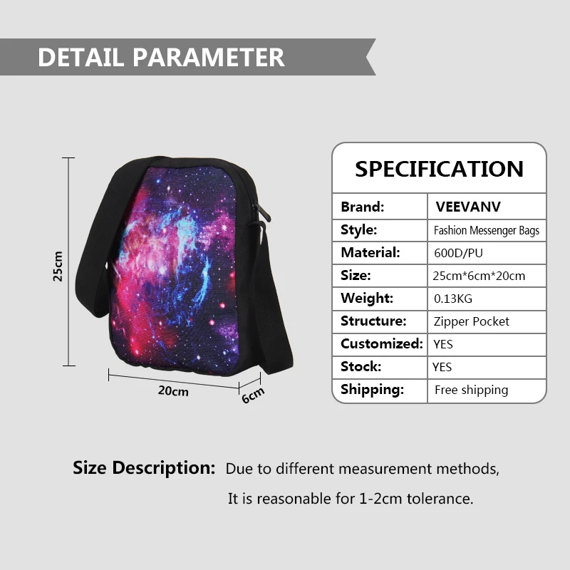 VEEVANV New Fashion Galaxy Night Sky Messenger Bag Men Women Handbags Universe Space Small Shoulder Bags Children Schoolbag