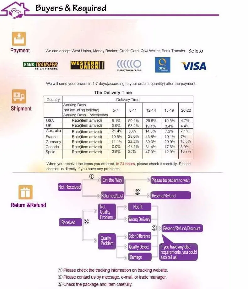 2, Our QC will check all bags carefully before your packages be shipped out;