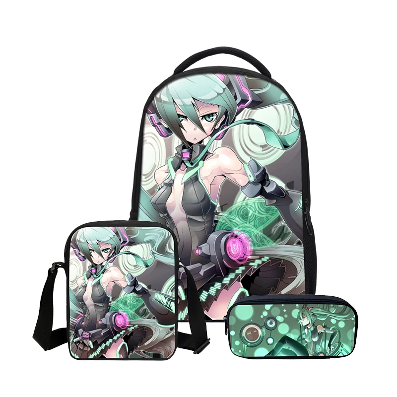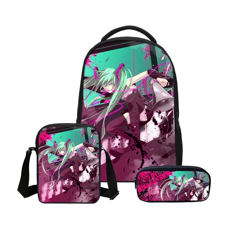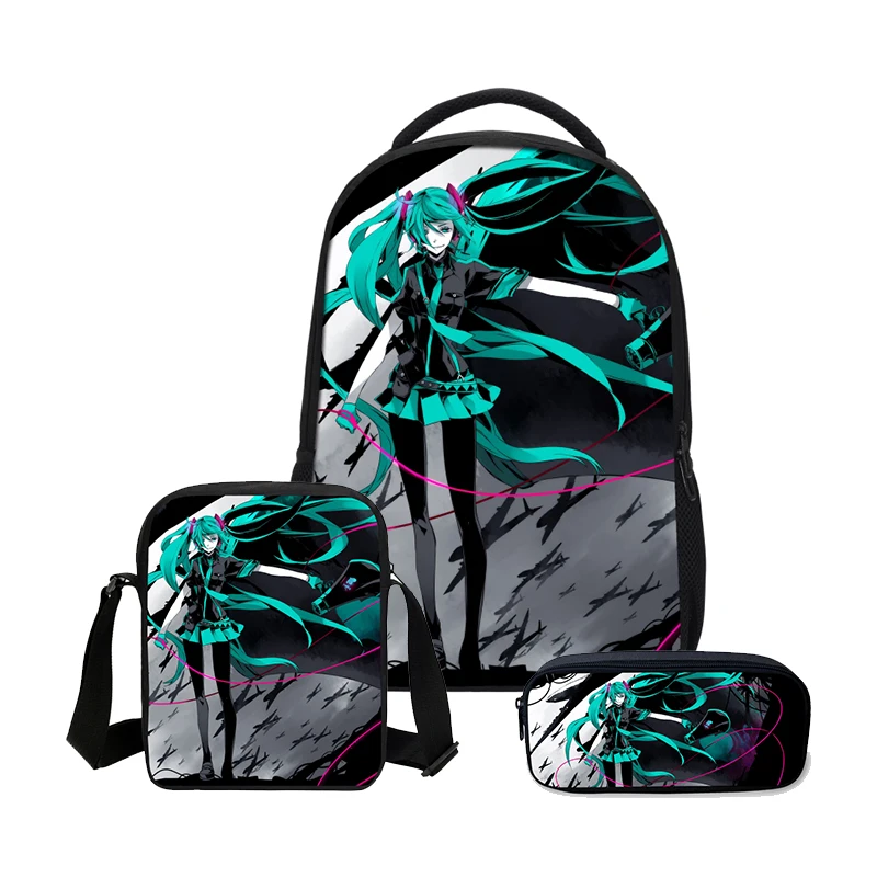 VEEVANV New Hatsune Miku Teenage School Backpacks Fashion 3 PCS/SET Shoulder Bags Pencil Case Girls Bookbag Women Casual Mochila