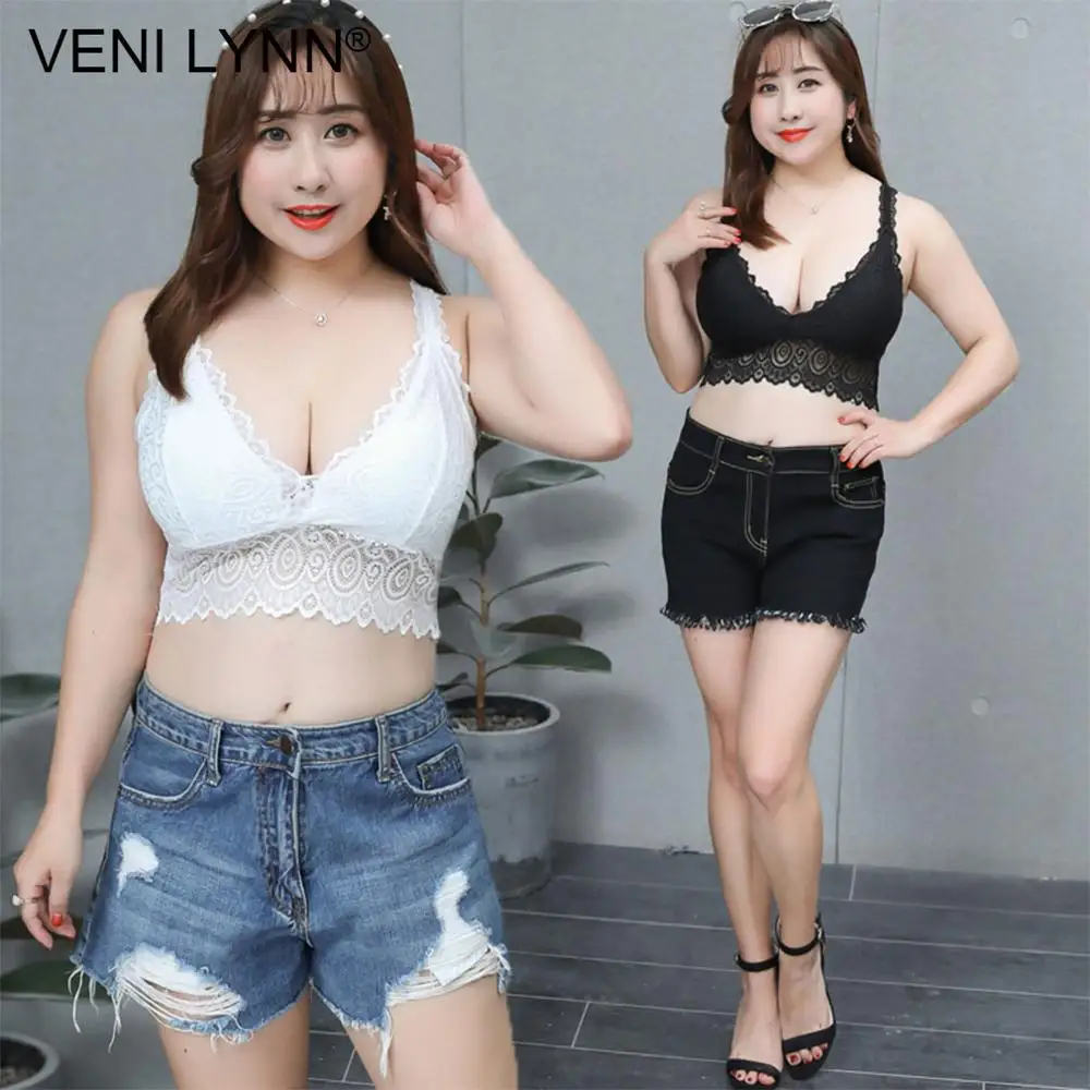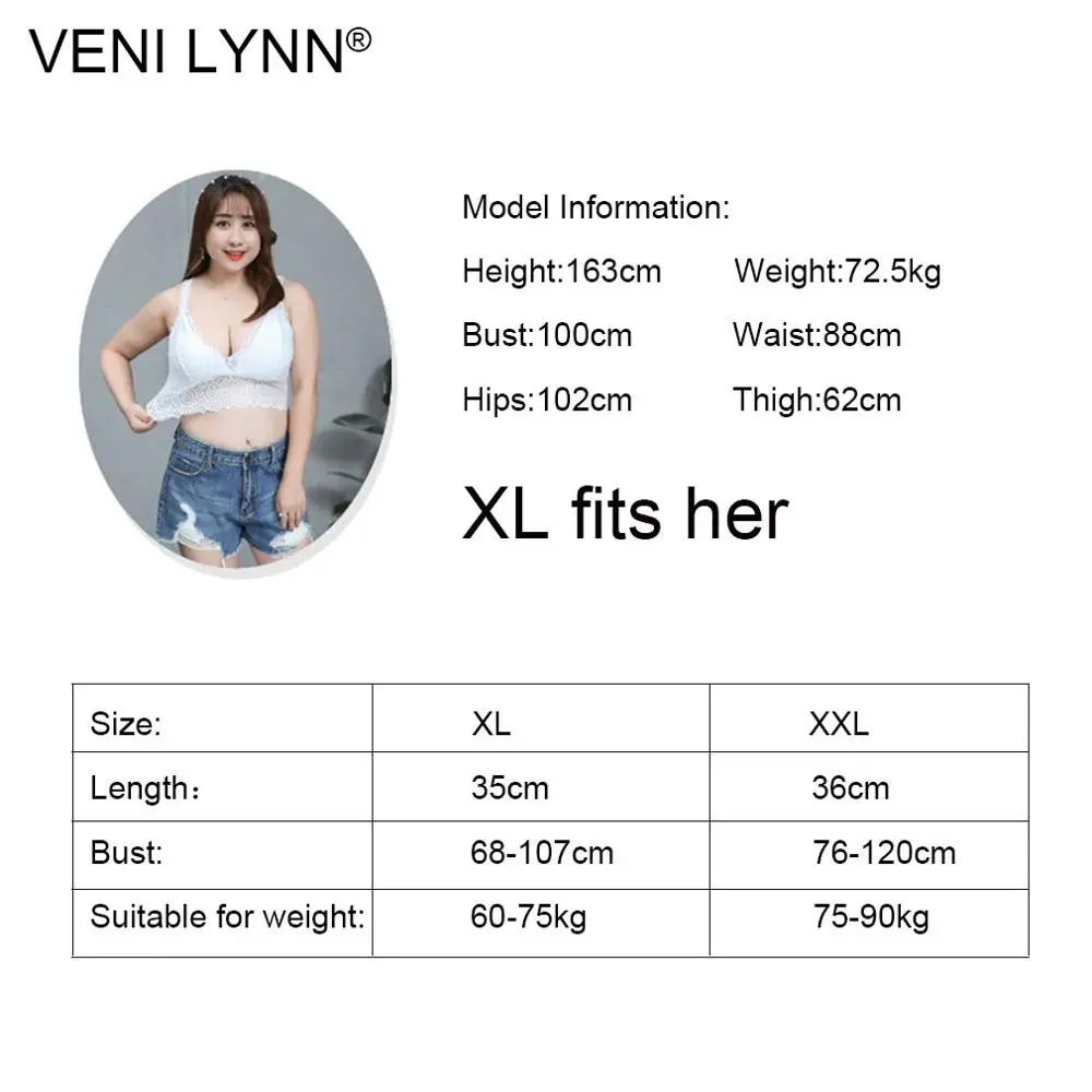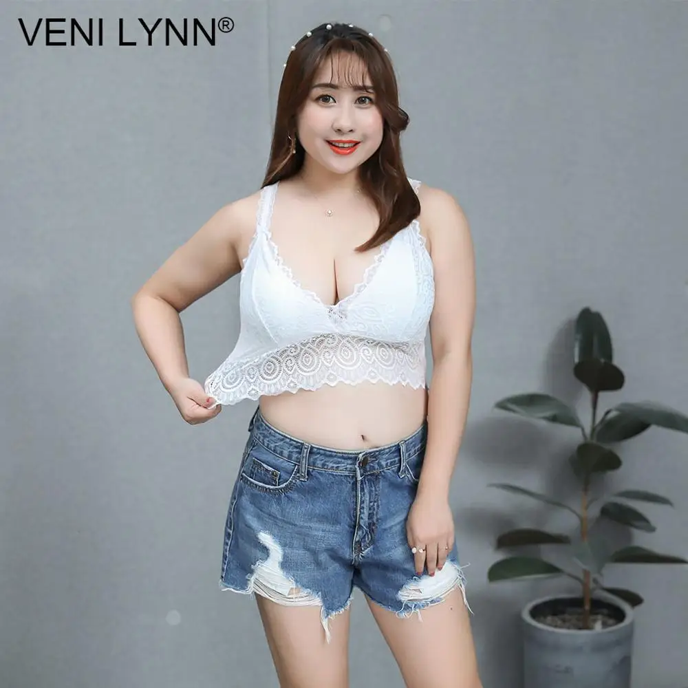 VENI LYNN Plus Size Women Lace Fat Vest Bra Big Breast Large Bust Chest Wrap Wireless Huge Boob Sexy White Soft Gilet Bralette