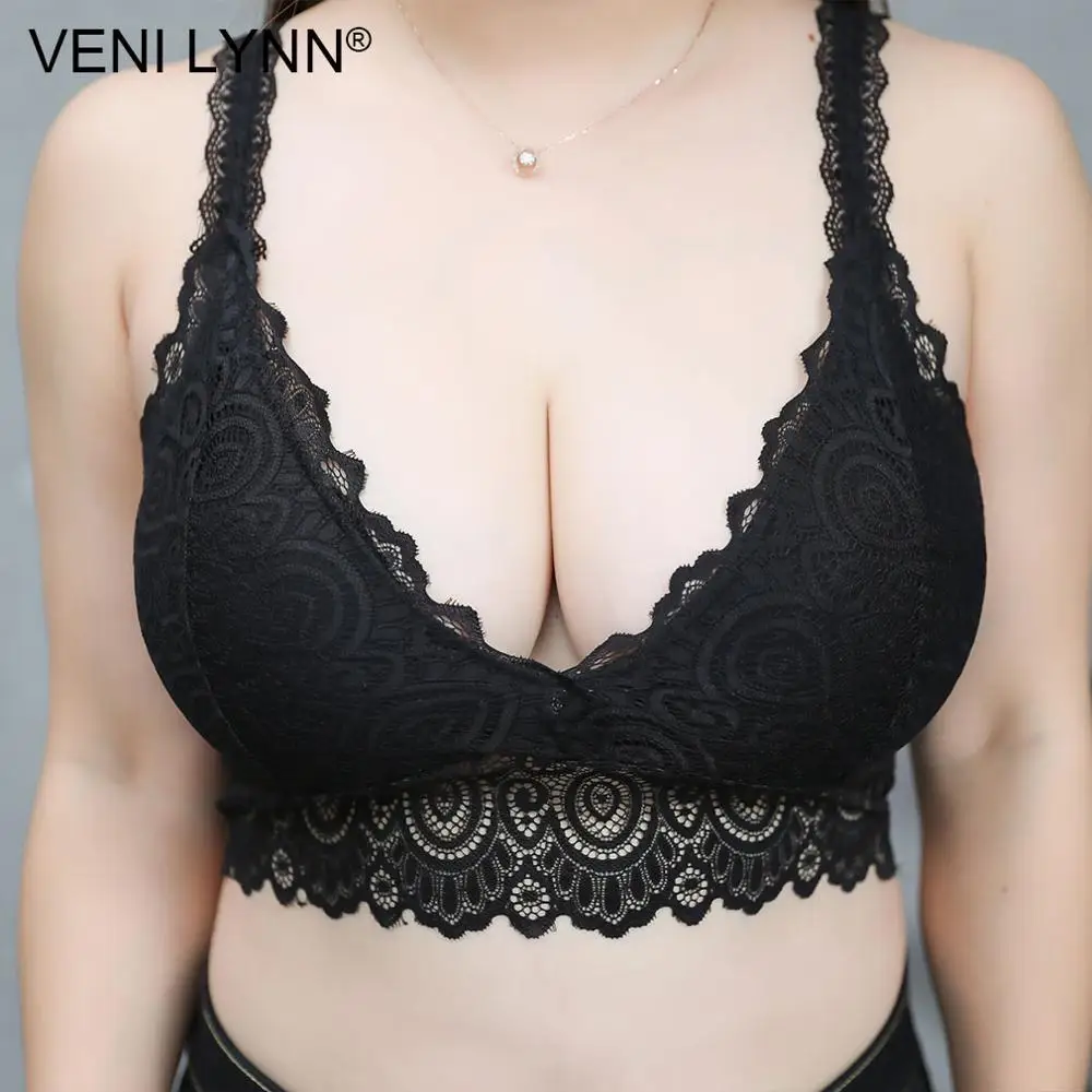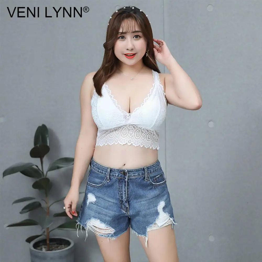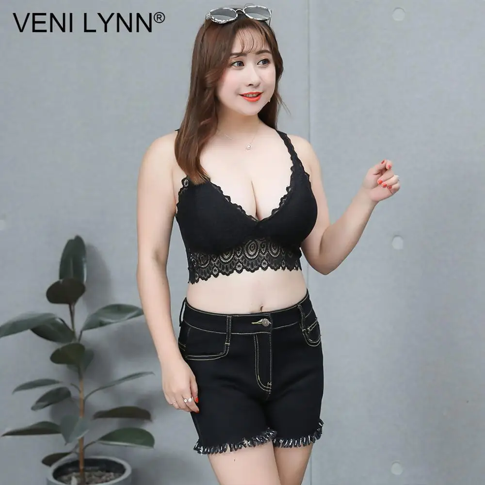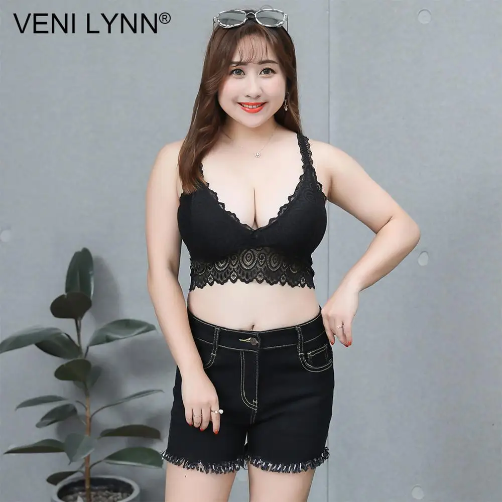 VENI LYNN Plus Size Women Lace Fat Vest Bra Big Breast Large Bust Chest Wrap Wireless Huge Boob Sexy White Soft Gilet Bralette