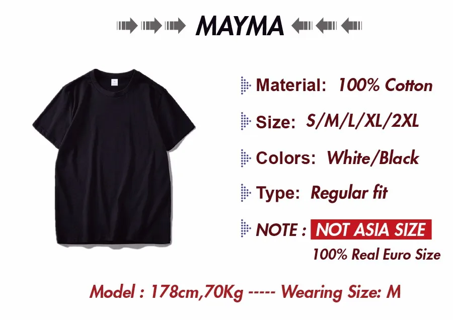 Standard EU/US size T-shirt,our size M is larger than Asian size XL.