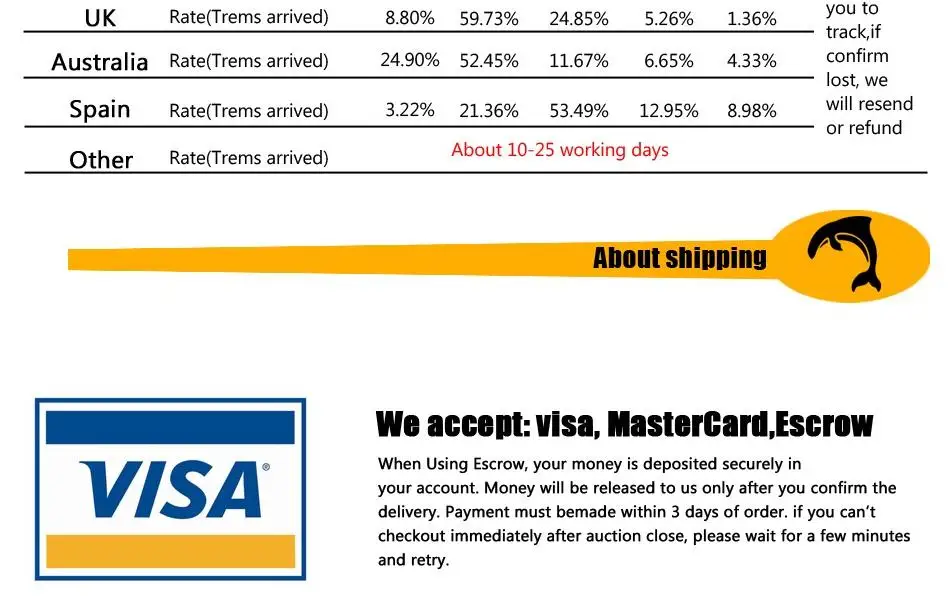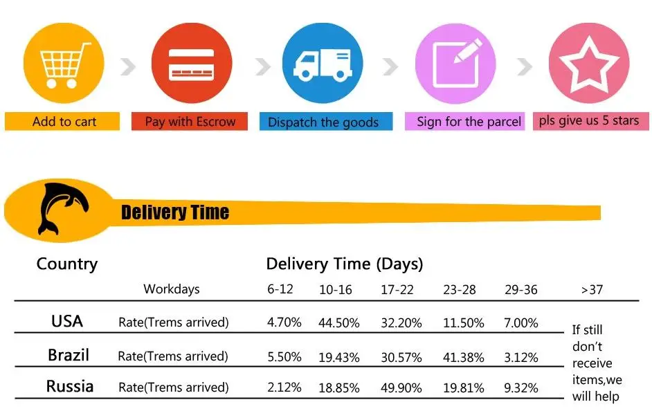 • If you did not receive the product within the guaranteed time( 45 days not including 2-5 day processing) you can request a refund or a reshipment.