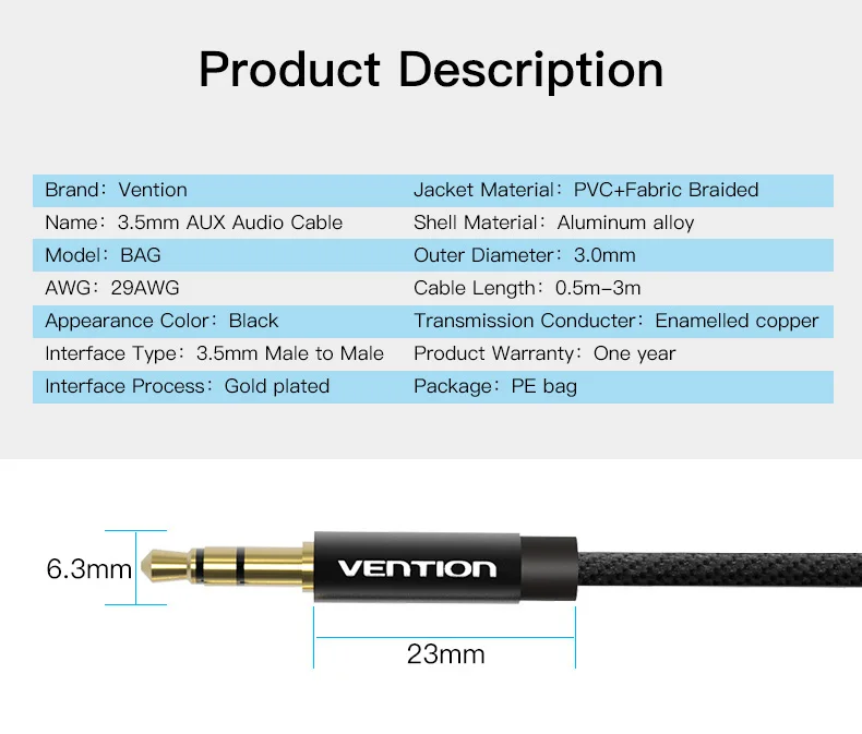 Vention 3.5mm Audio Cable Fabric Braid 3.5 jack to jack aux cord 1m 1.5m 2m 3m Headphone Speaker AUX Cable for iphone 8 Car MP3