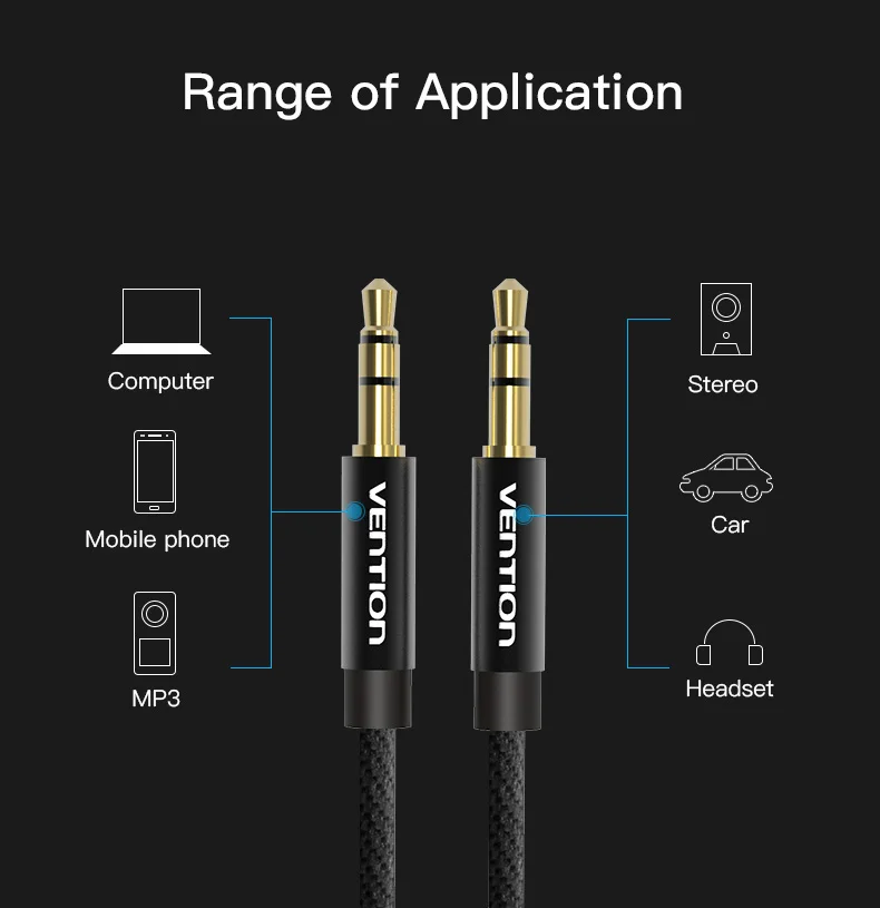 Vention 3.5mm Audio Cable Fabric Braid 3.5 jack to jack aux cord 1m 1.5m 2m 3m Headphone Speaker AUX Cable for iphone 8 Car MP3