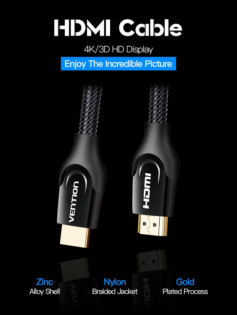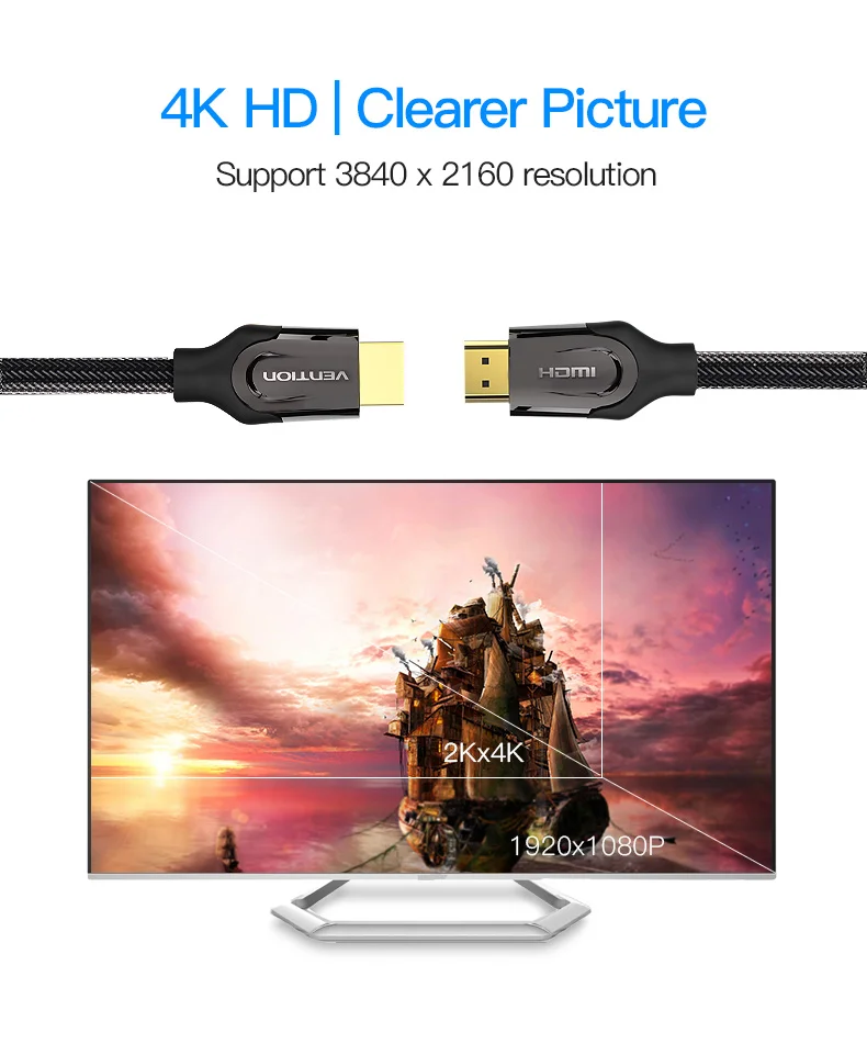 Vention HDMI Cable HDMI to HDMI cable HDMI 2.0 4k 3D 60FPS Cable for HD TV LCD Laptop PS3 Projector Computer Cable 1m 2m 3m 5m