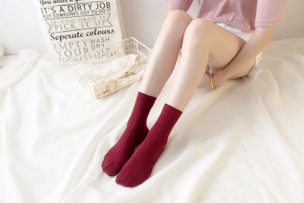 VERIDICAL 5 pairs/lot Japanese style women girl short socks Solid good quality cotton seamless harajuku socks free shipping