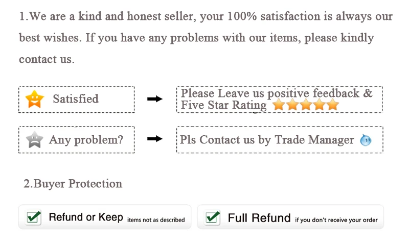 • If you did not receive the product within the guaranteed time( 45 days not including 2-5 day processing) you can request a refund or a reshipment.