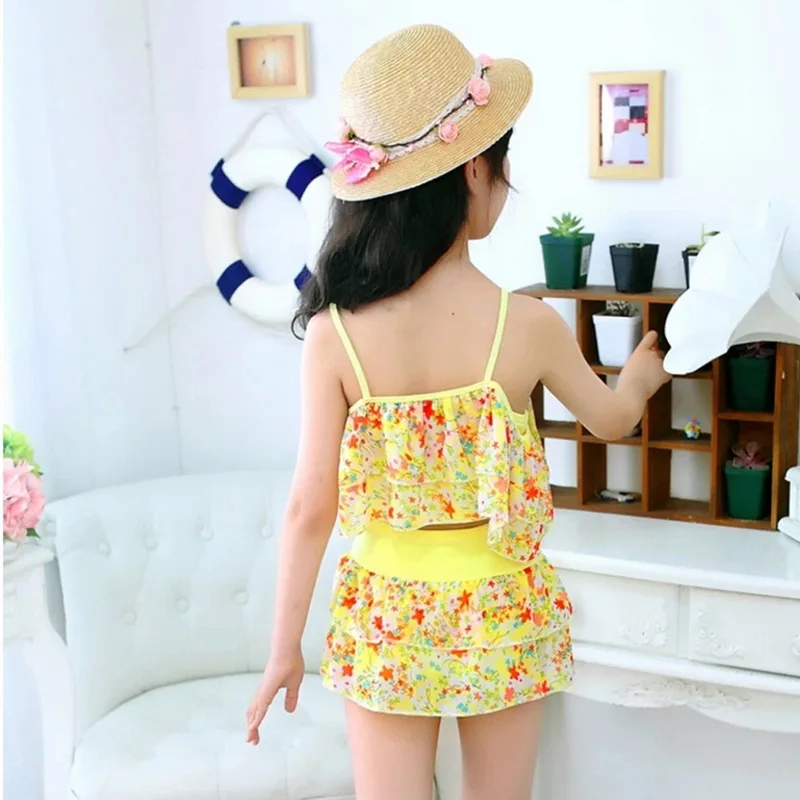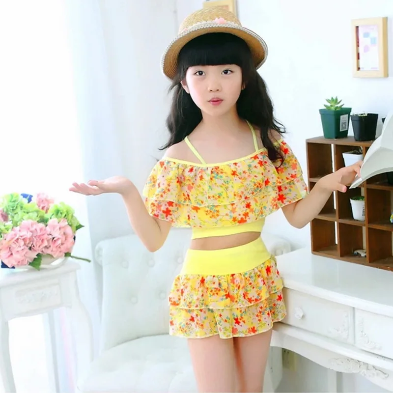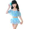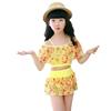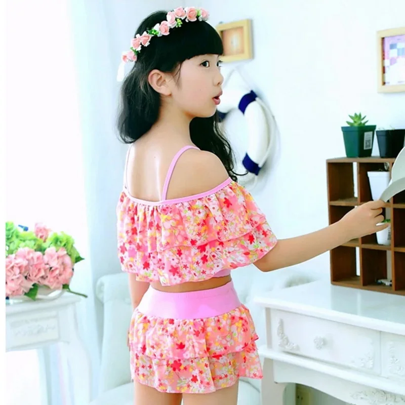 Vertvie 2018 Two Piece Kids Baby Girl Floral Print Off-shoulder Bow Bikini Set Swimwear High Waist Swimsuit Ruffle Bathing Suit