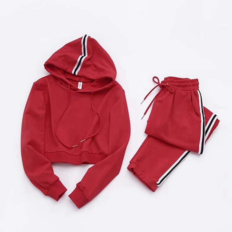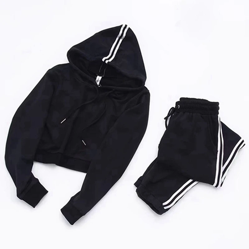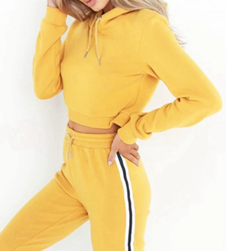 Vertvie 2018 Women Yoga Set Striped Hooded Elastic Waist Tracksuit Sportswear Running Set Fitness Crop Top Sweatshirt+Pant Set