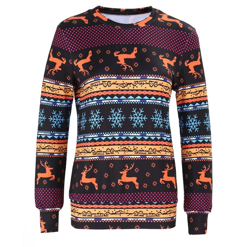 vertvie Brand Hoodies Women 2017 Christmas Clothes Elk Harajuku Snowflake Print Pullover Skateboarding Hoodie Winter Fleece XL