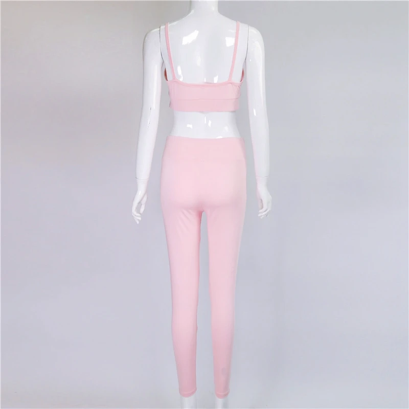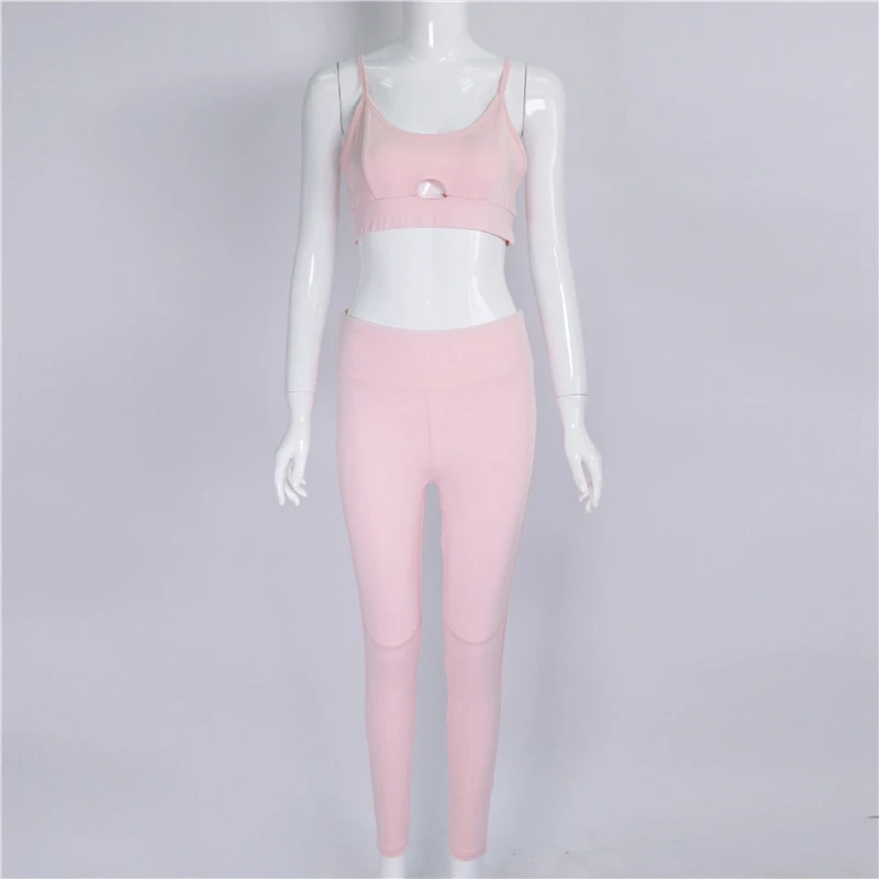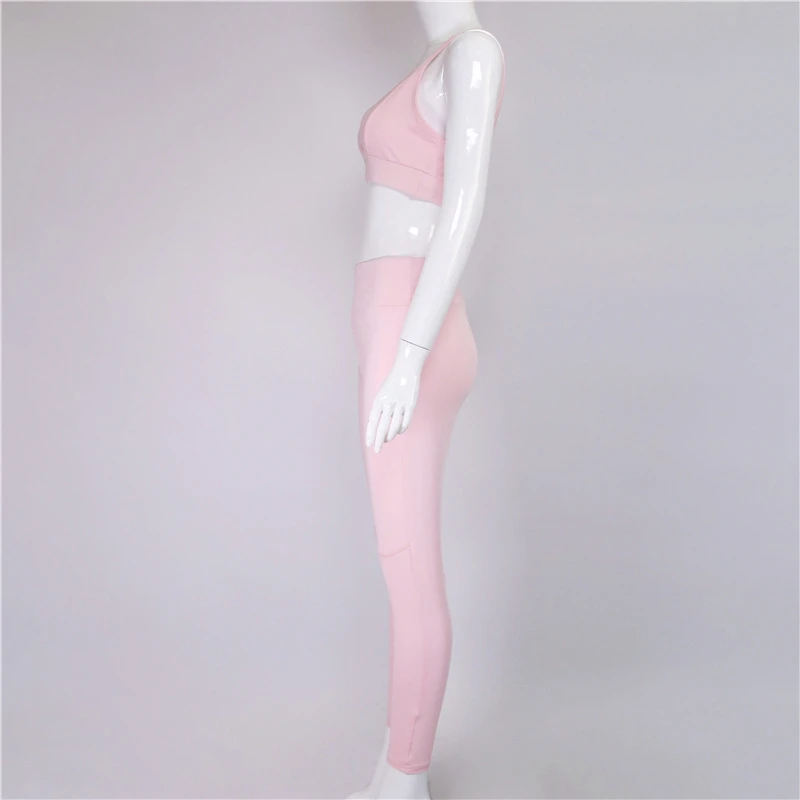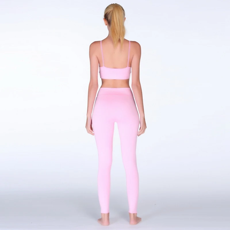 Vertvie Fitness Yoga Set New Pink Solid Crop Top+Long Pant Athleisure Women Suit Gym Sports Bra+Legging Two Piece Set Sportswear