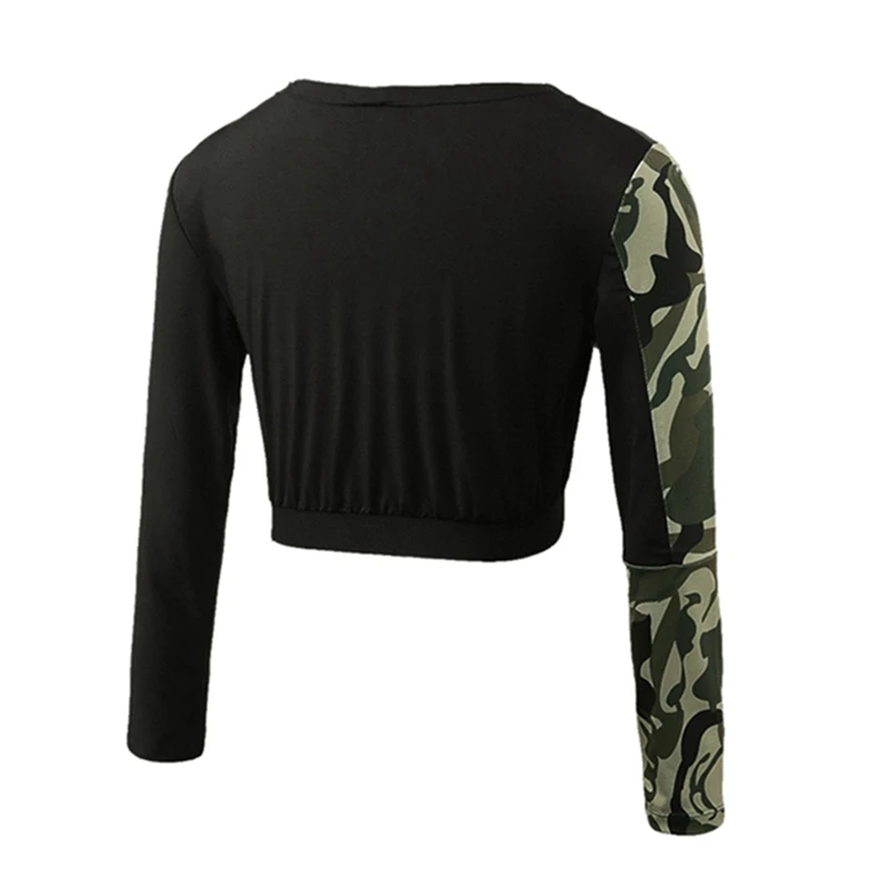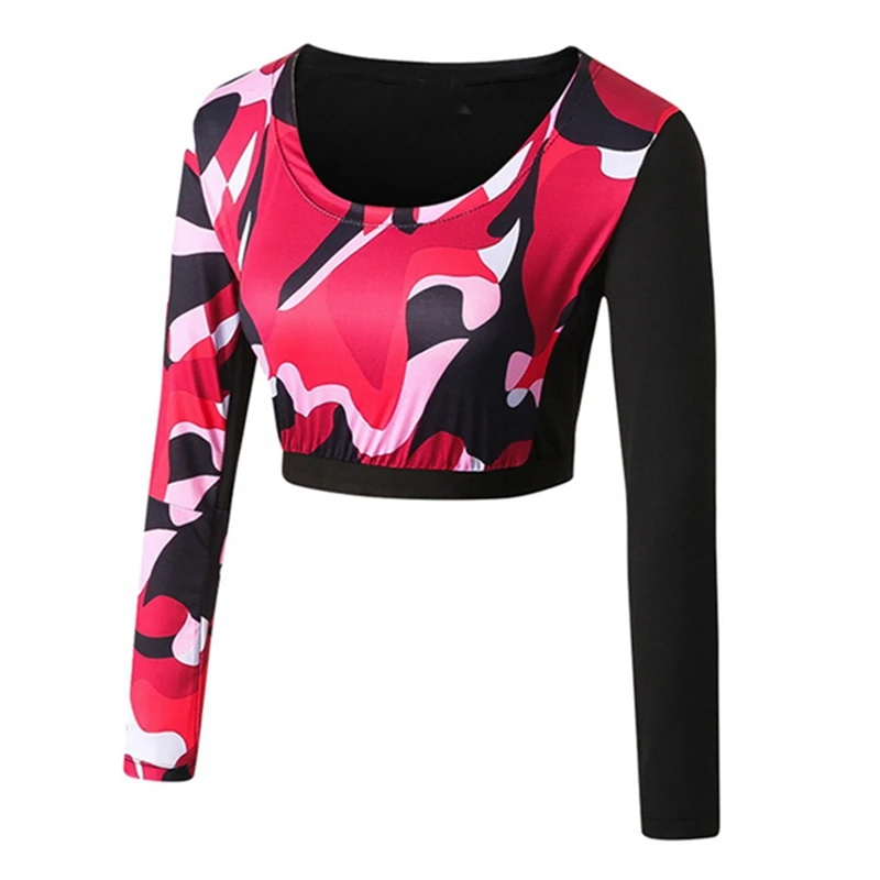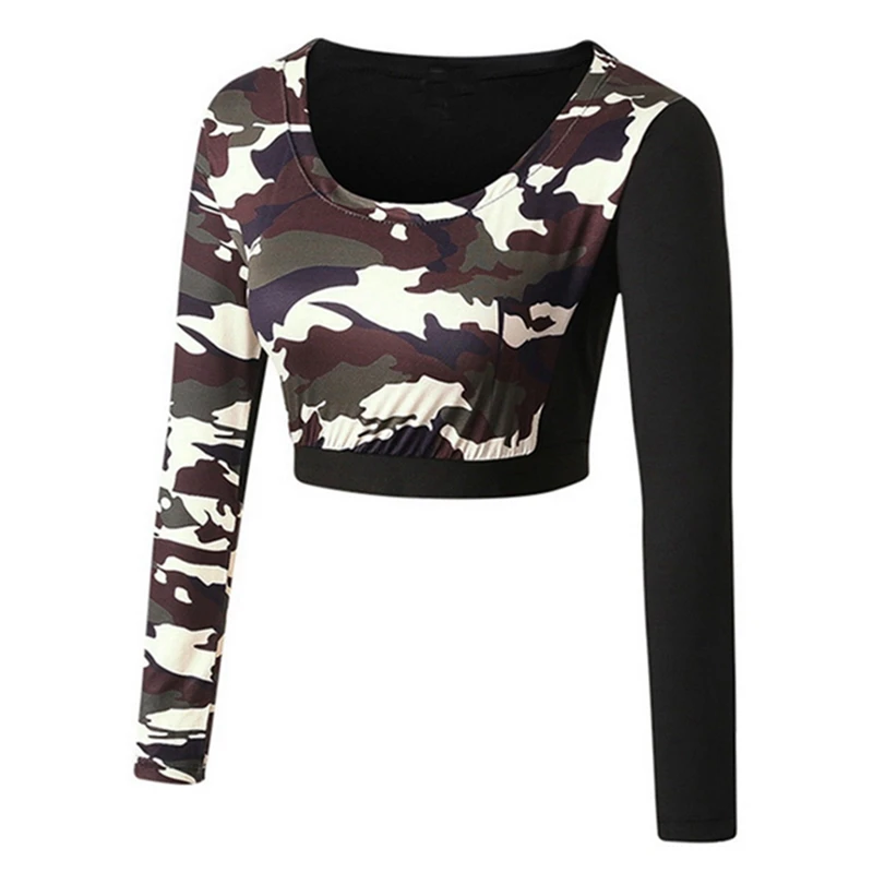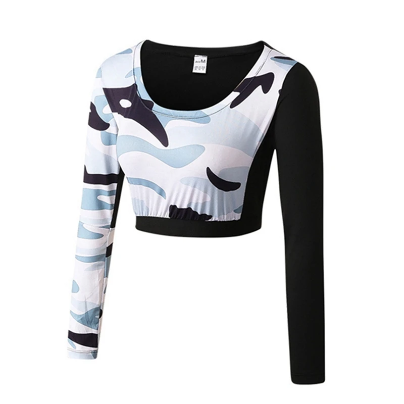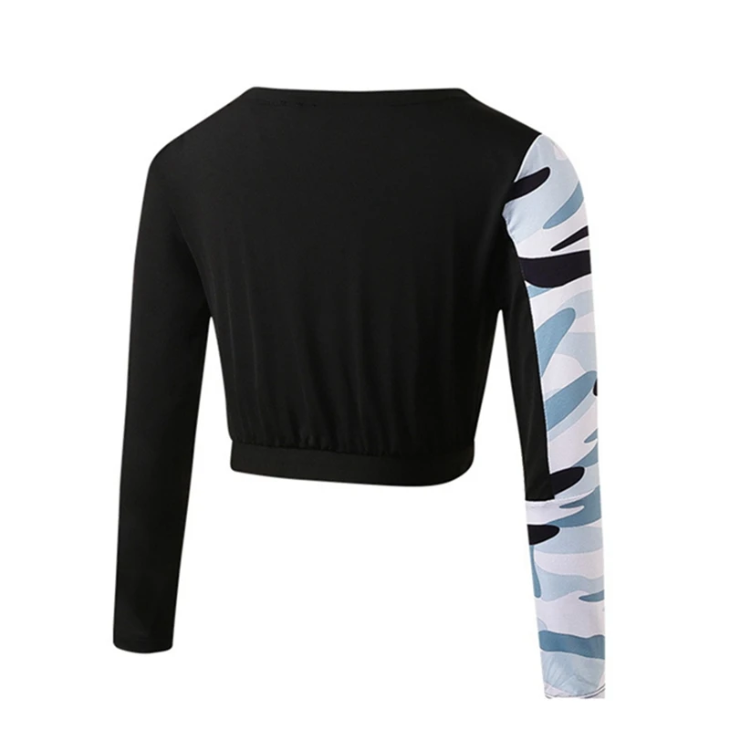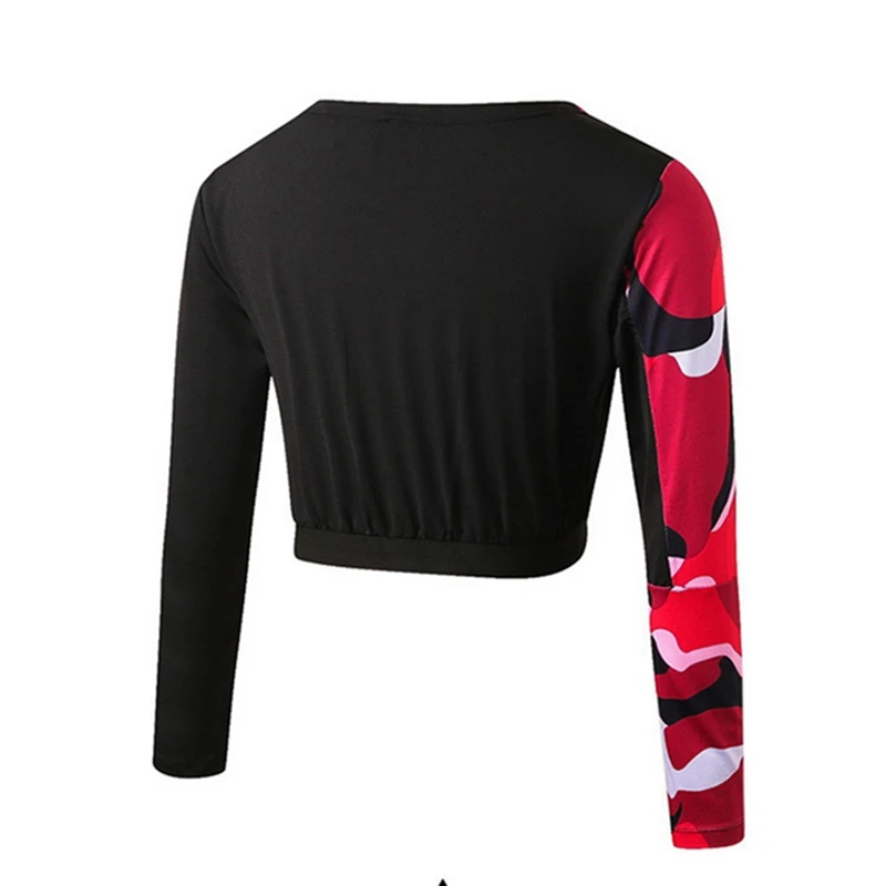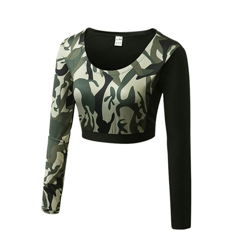 Vertvie Gym Workout Shirt Women Fitness T-shirt Long Sleeve Sexy Crop Top Camouflage Yoga Tee Shirts Crossfit Sweatshirt Joggers