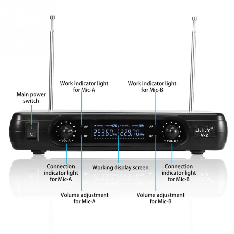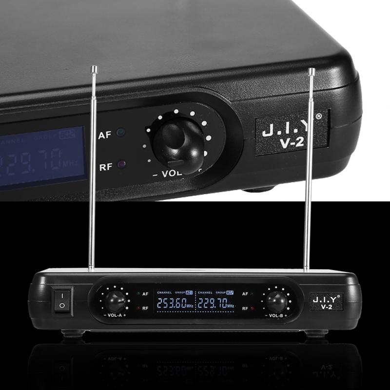 Dual Handheld Wireless Dynamic Microphones + LCD Receiver System for Karaoke Singing Speech