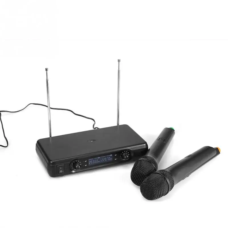 Dual Handheld Wireless Dynamic Microphones + LCD Receiver System for Karaoke Singing Speech